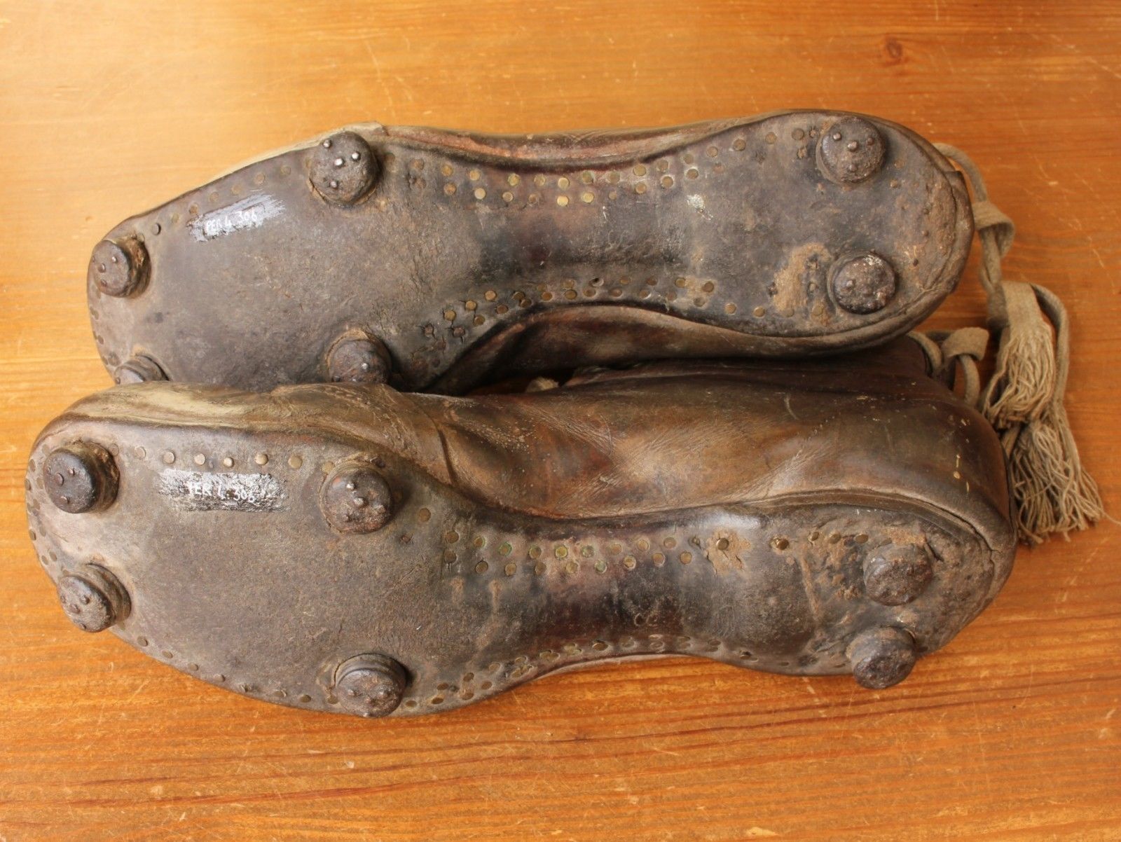 This interesting pair of antique football boots which date from the 1920s / 30s are the same type as the boots worn by Uruguay and that were used in the 1930 World Cup. A pair of very similar boots are in the National Football Museum.
