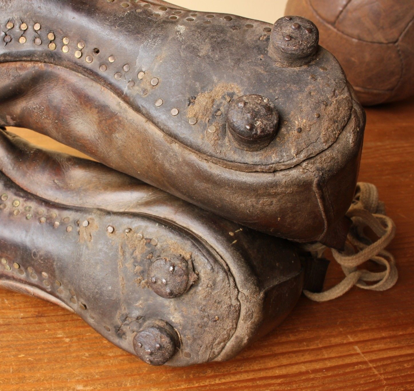 These original vintage boots are made of brown leather, leather soles, nailed on studs and would make a great addition to a football boot collection.