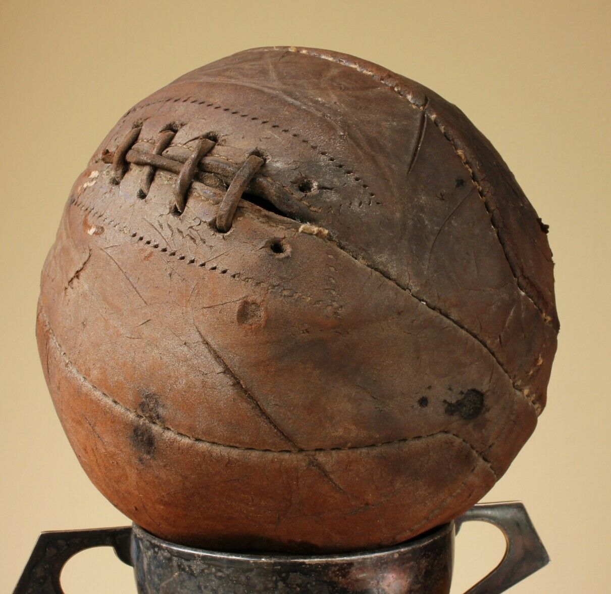 This original 8 panel leather football which date from c1880 is complete with the original leather laces, has 5 pairs of lace holes and is an extremely rare and desirable piece of collectable football memorabilia.