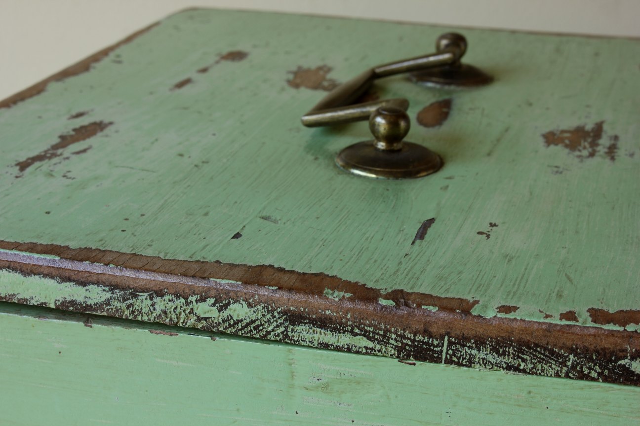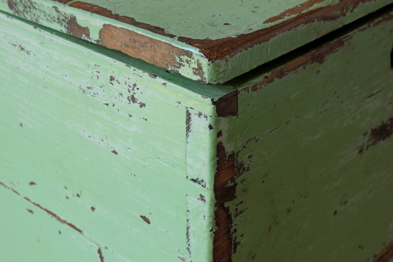 This great looking antique pine cabinet which dates from the 19th century has a charming look with it's worn green paint.