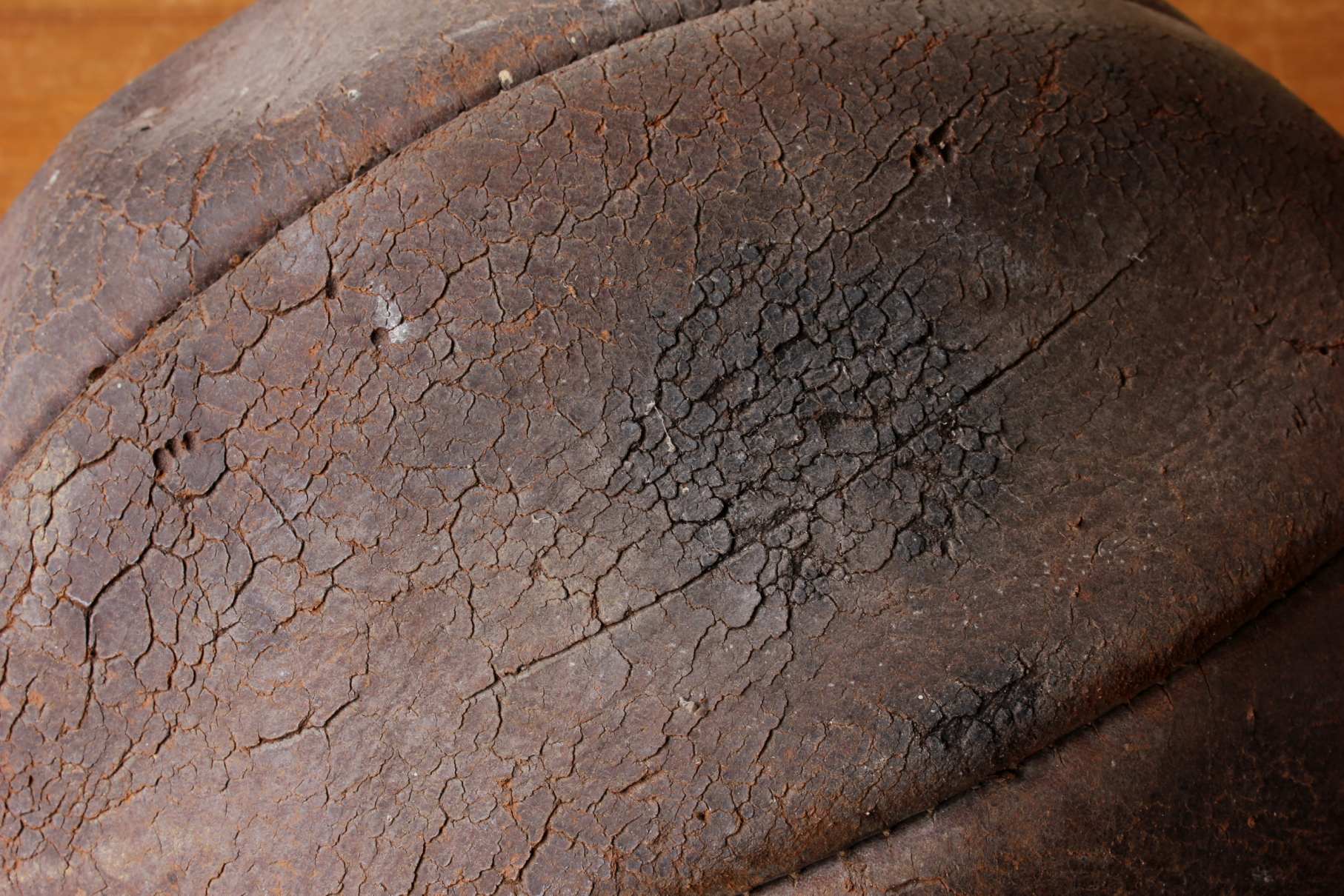 Condition: Ball is in well used condition with lots of age related wear, scuffs, scrapes, staining, cracks and old repairs. Leather has dried out but the stitching is good. Holds shape for display. Original leather laces. Please see pictures.