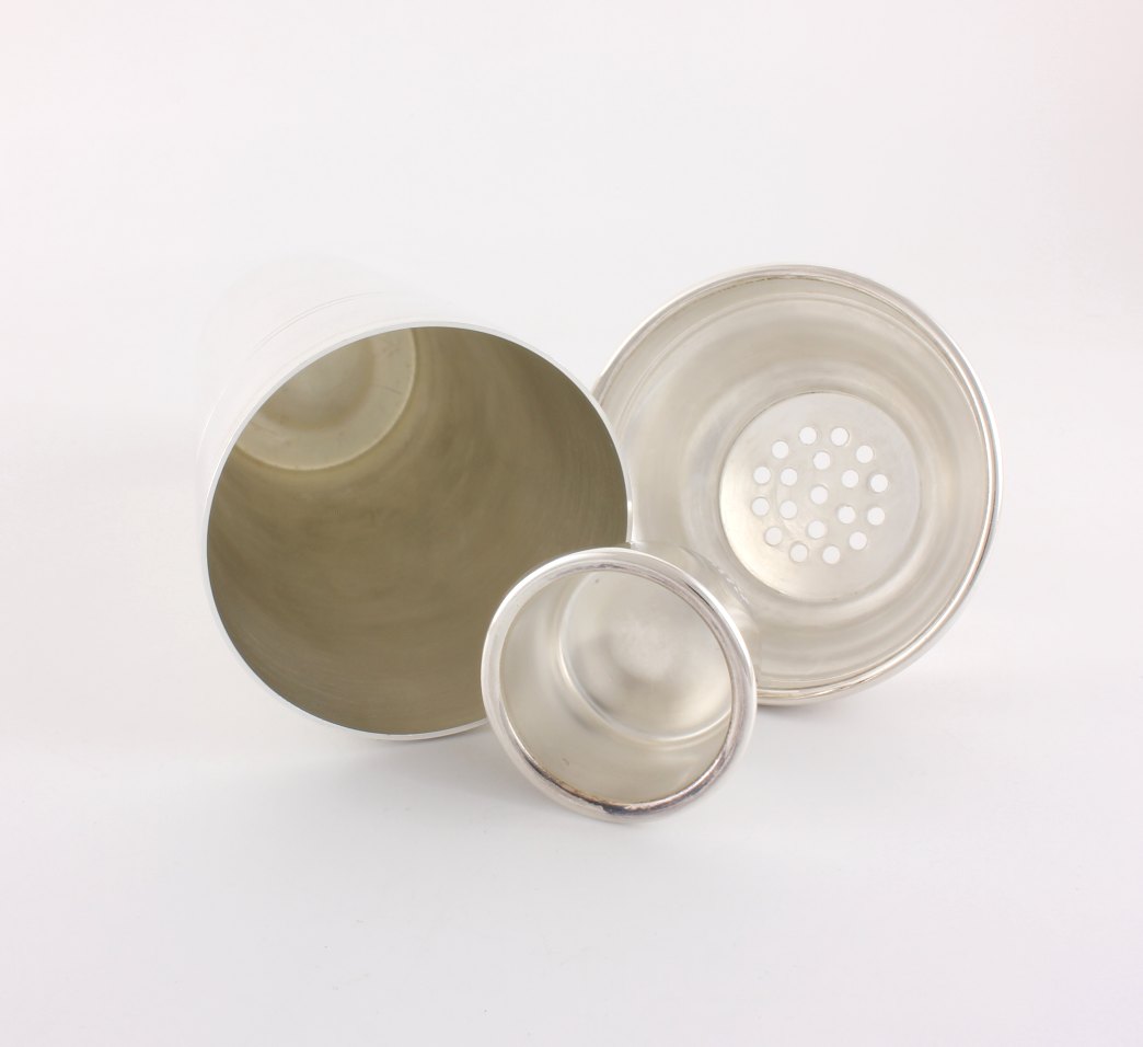 This shaker with the interesting connection looks great on display with it's stepped design top and tapered body and is a nice usable bar accessory.