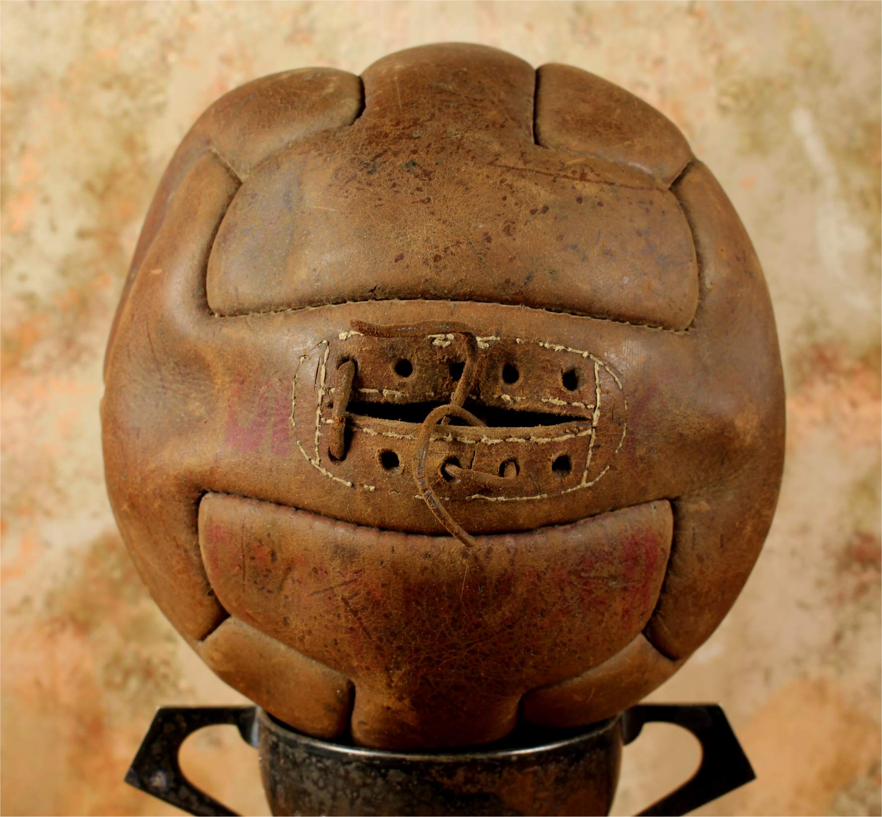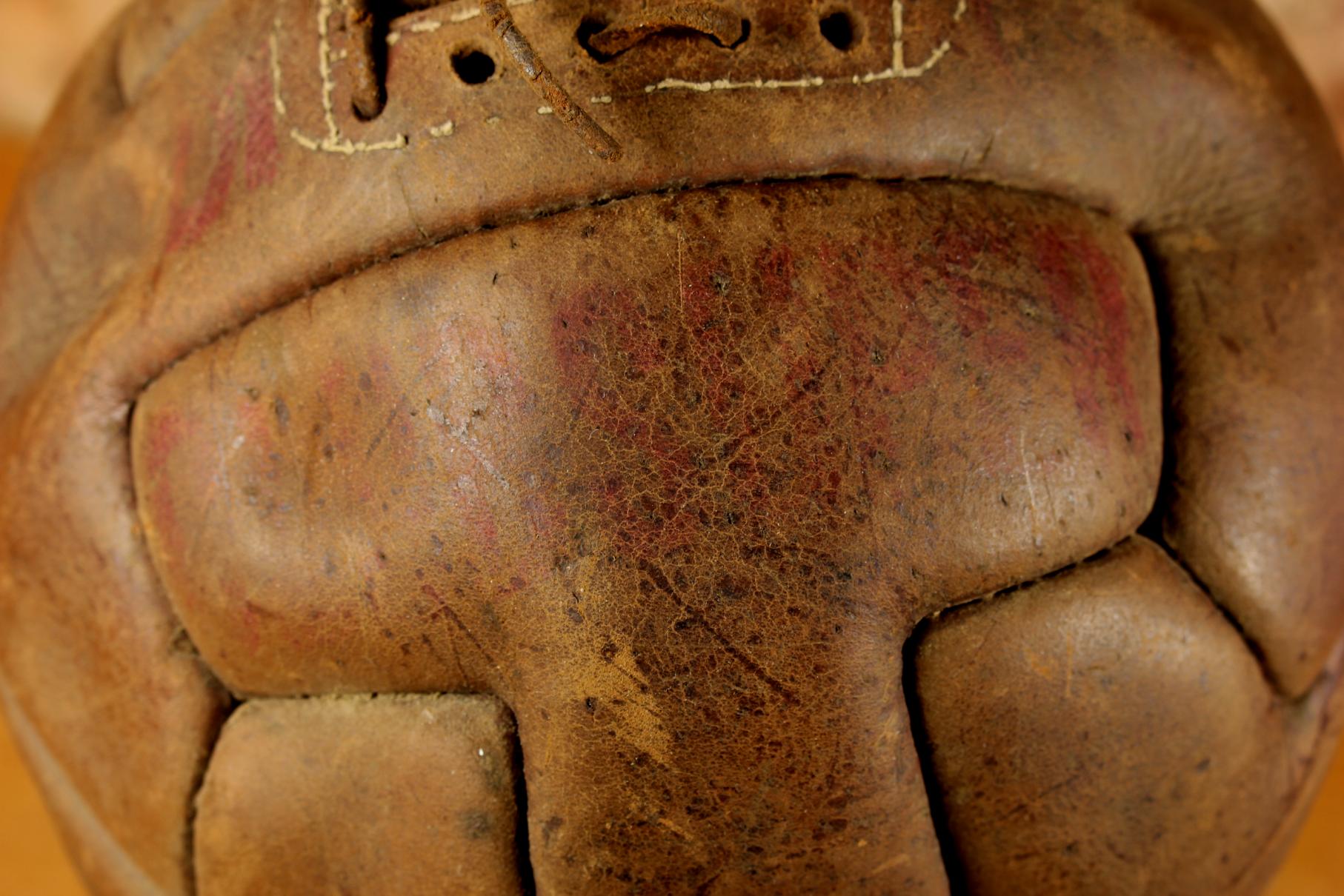 Condition: Good decorative vintage / antique condition with age related wear and marks. Leather has dried and hardened. This ball does not have a bladder fitted but holds it's shape to display well. Remains of leather lace. Please see all pictures.