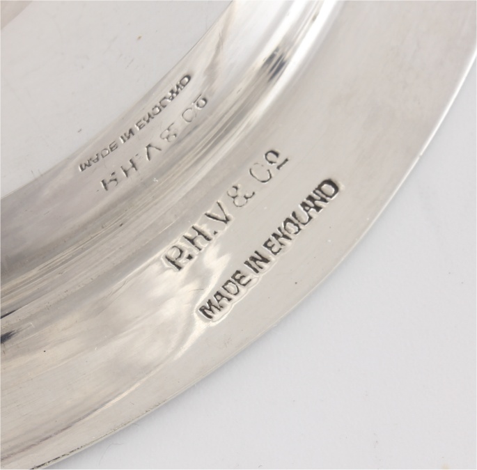 Marked: Marked to underside of rim: P.H.V & Co. Made in England.