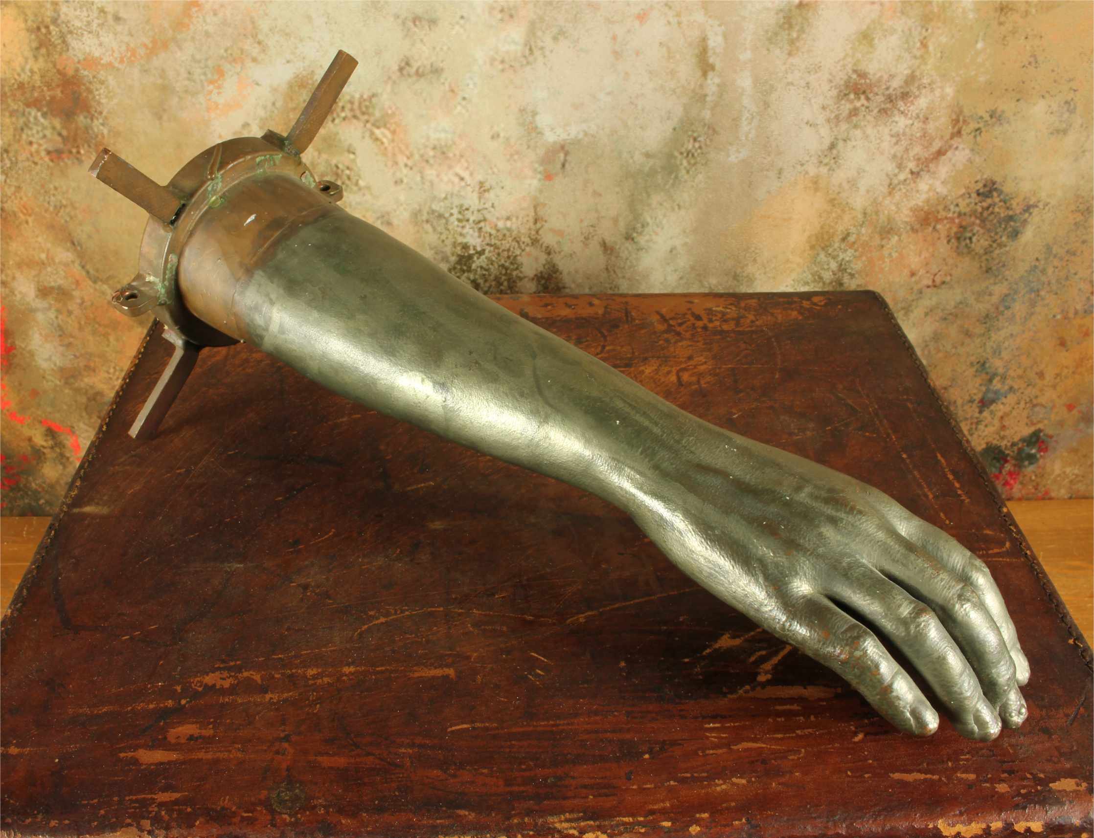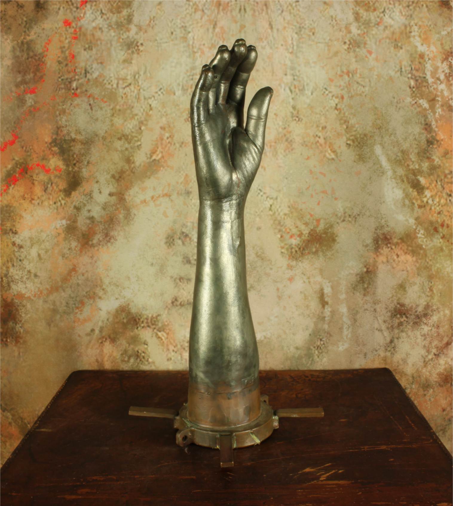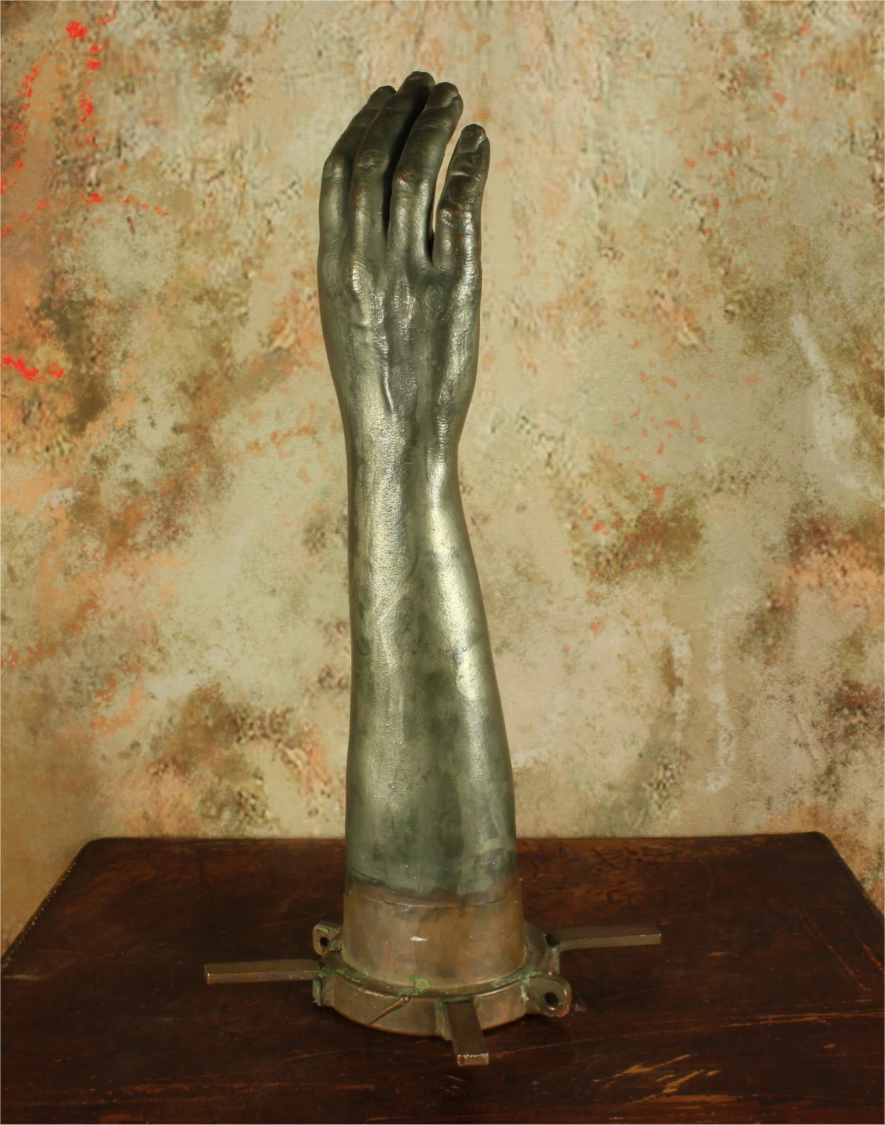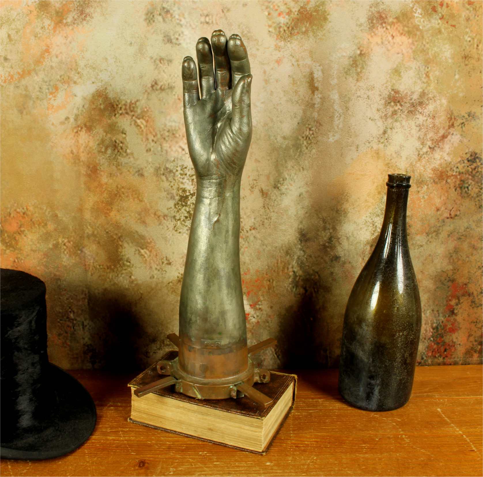 This unusual vintage hand & lower arm which is made of heavy copper dates from the mid 20th century, originates from France and would have most likely been a one off mould used to make a rubber prosthetic arm or a life size model.