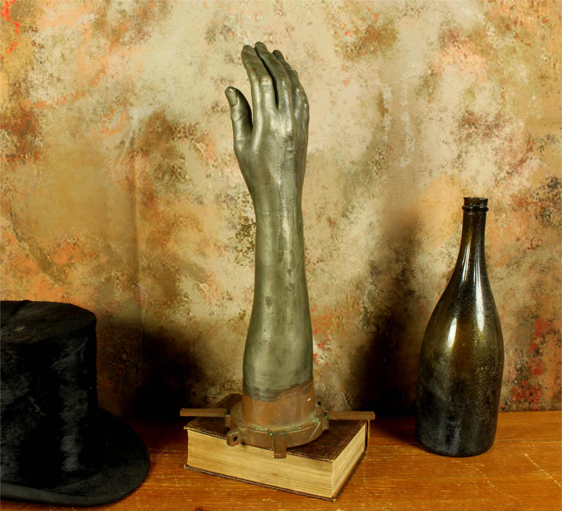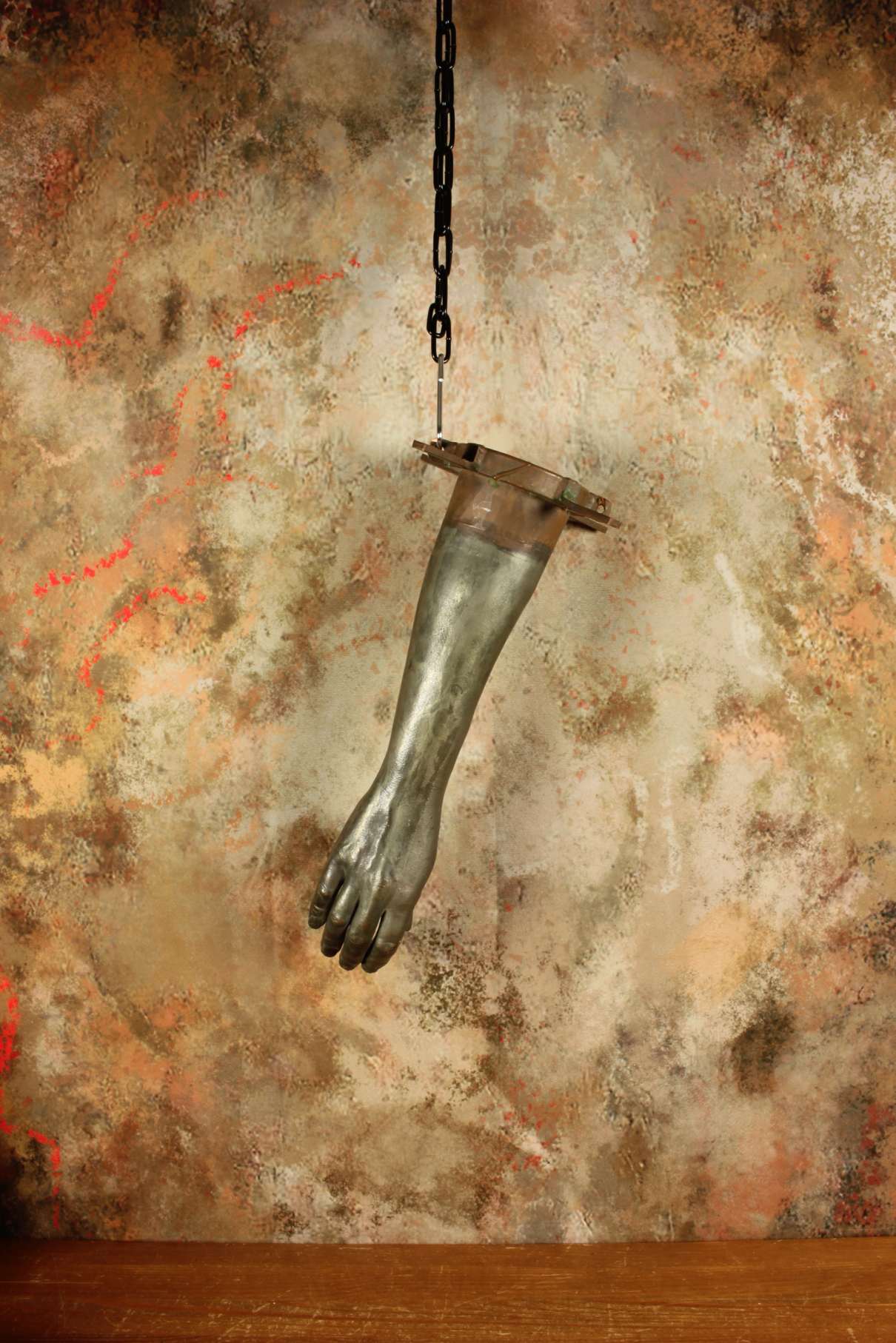 This highly decorative life size piece which is of a female arm has a silver coloured coated finish and has lots of detail including fingernails, palm lines, knuckles and joints.