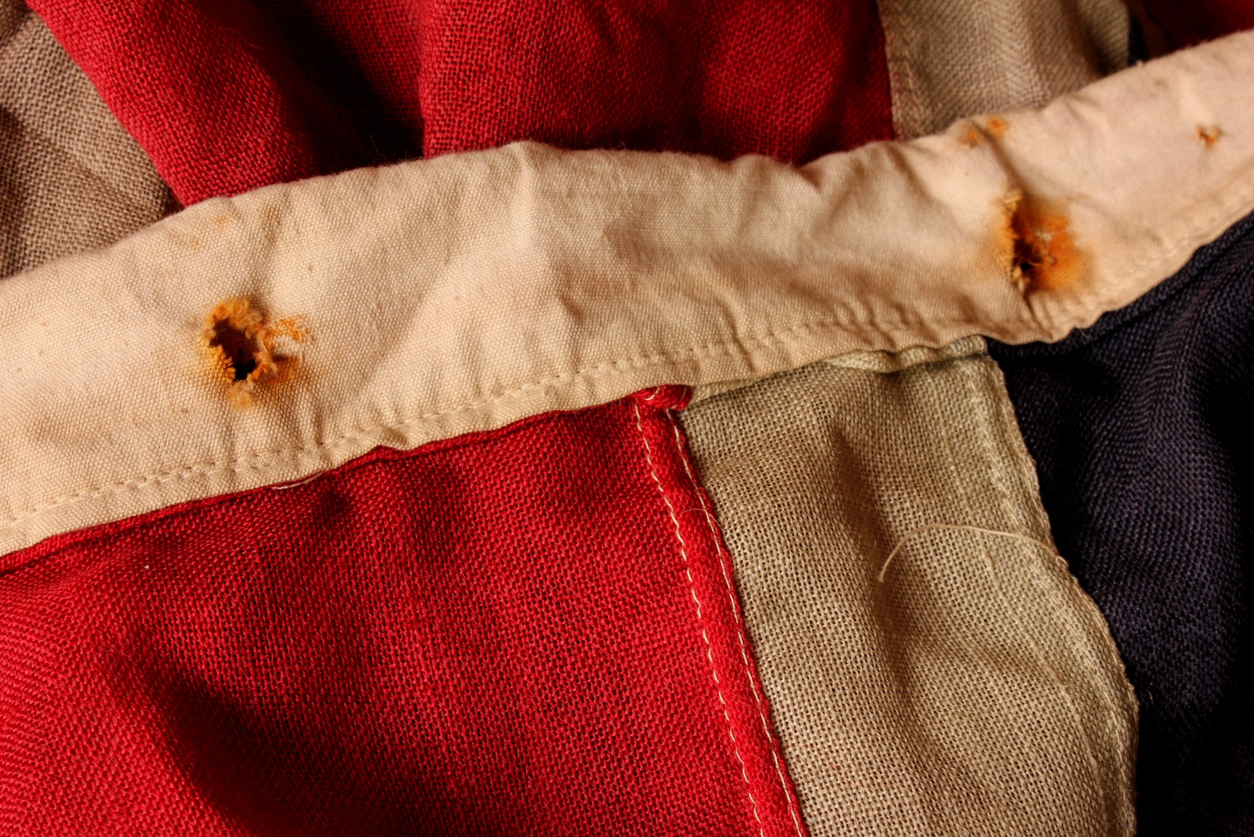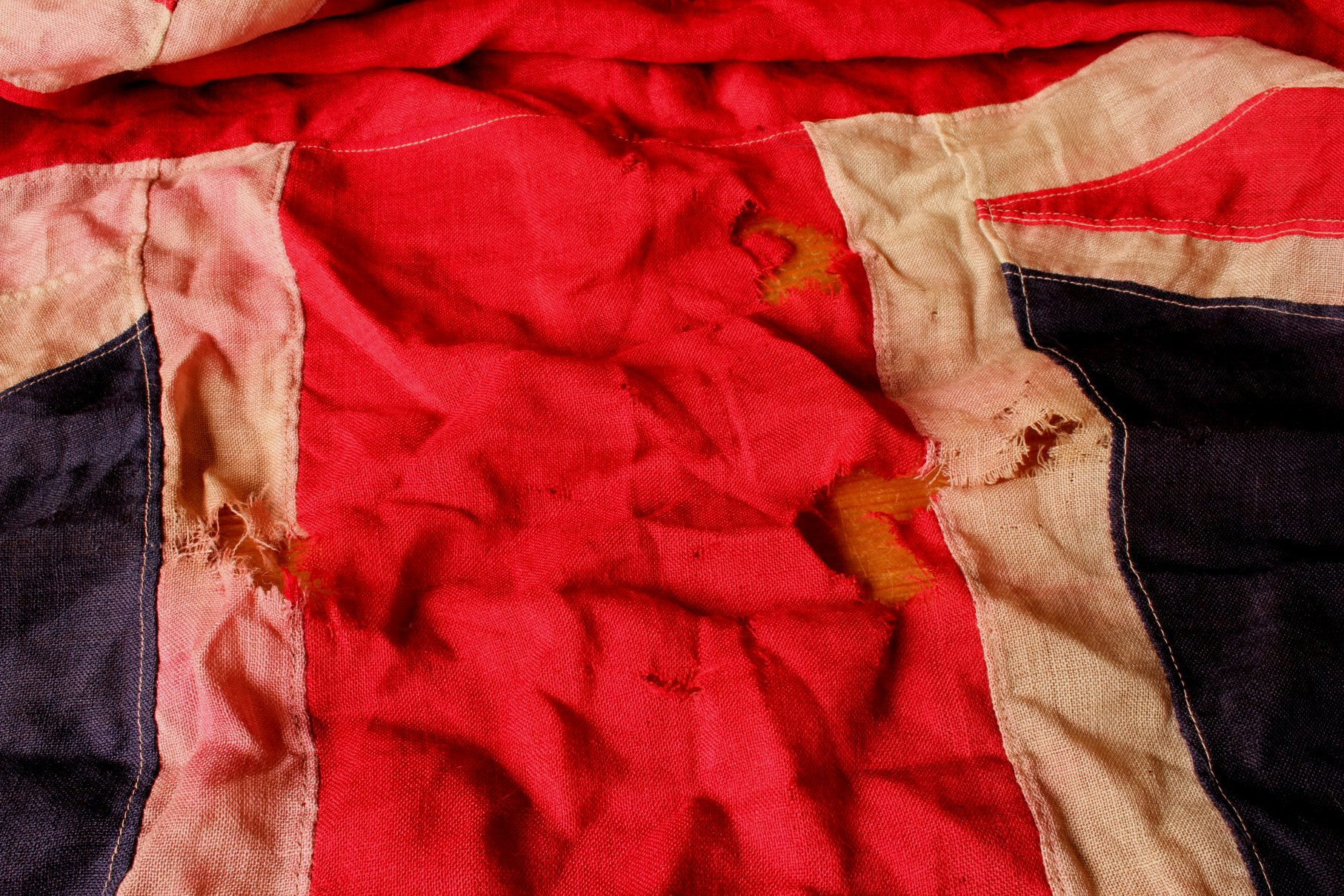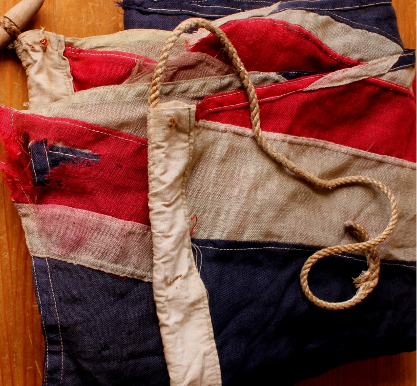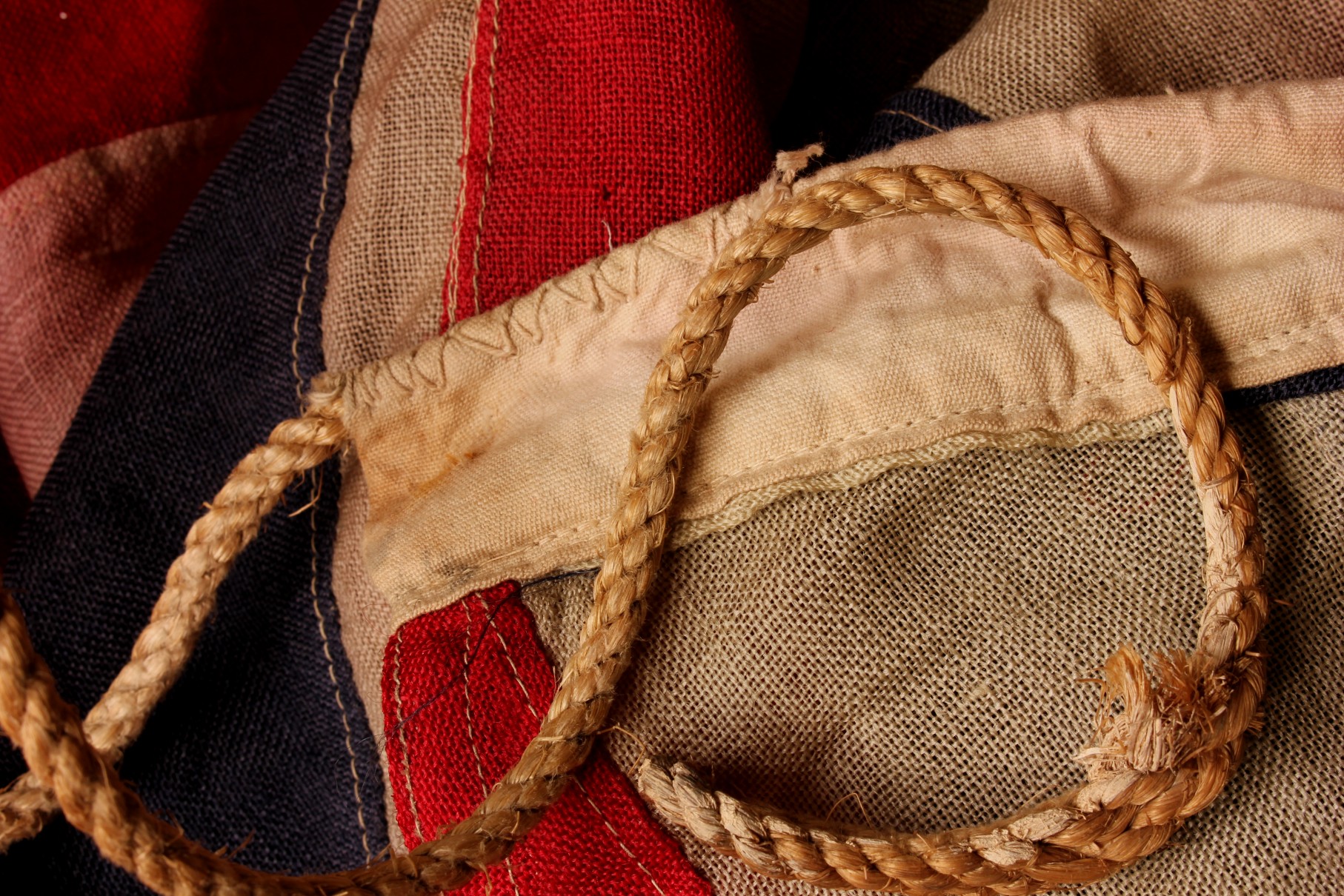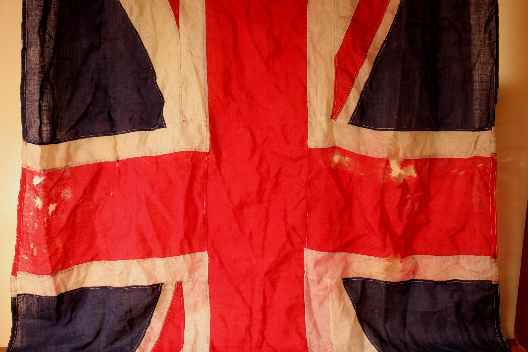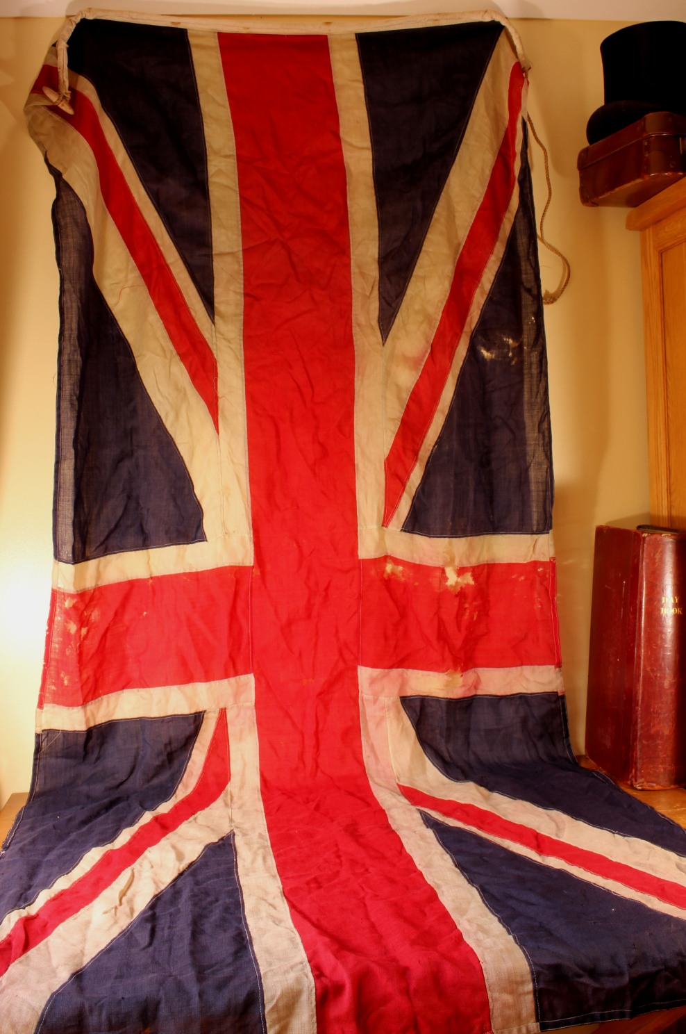 This large original vintage Union Jack Flag which dates from c1930 is a nice size at 8 feet in length, has halyard rope with a wooden toggle and each segment is individually sewn.