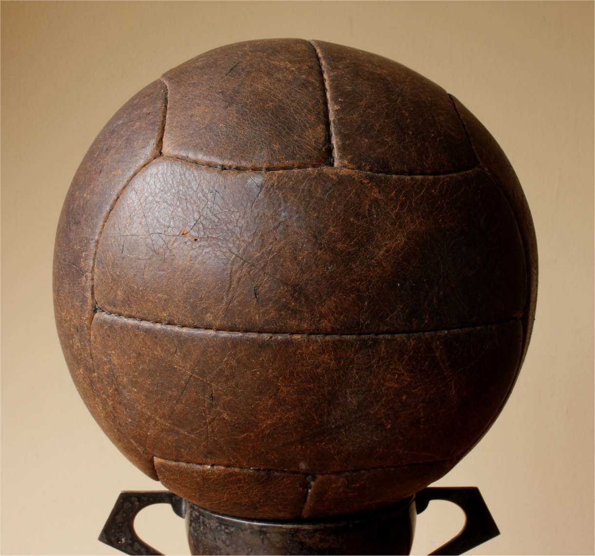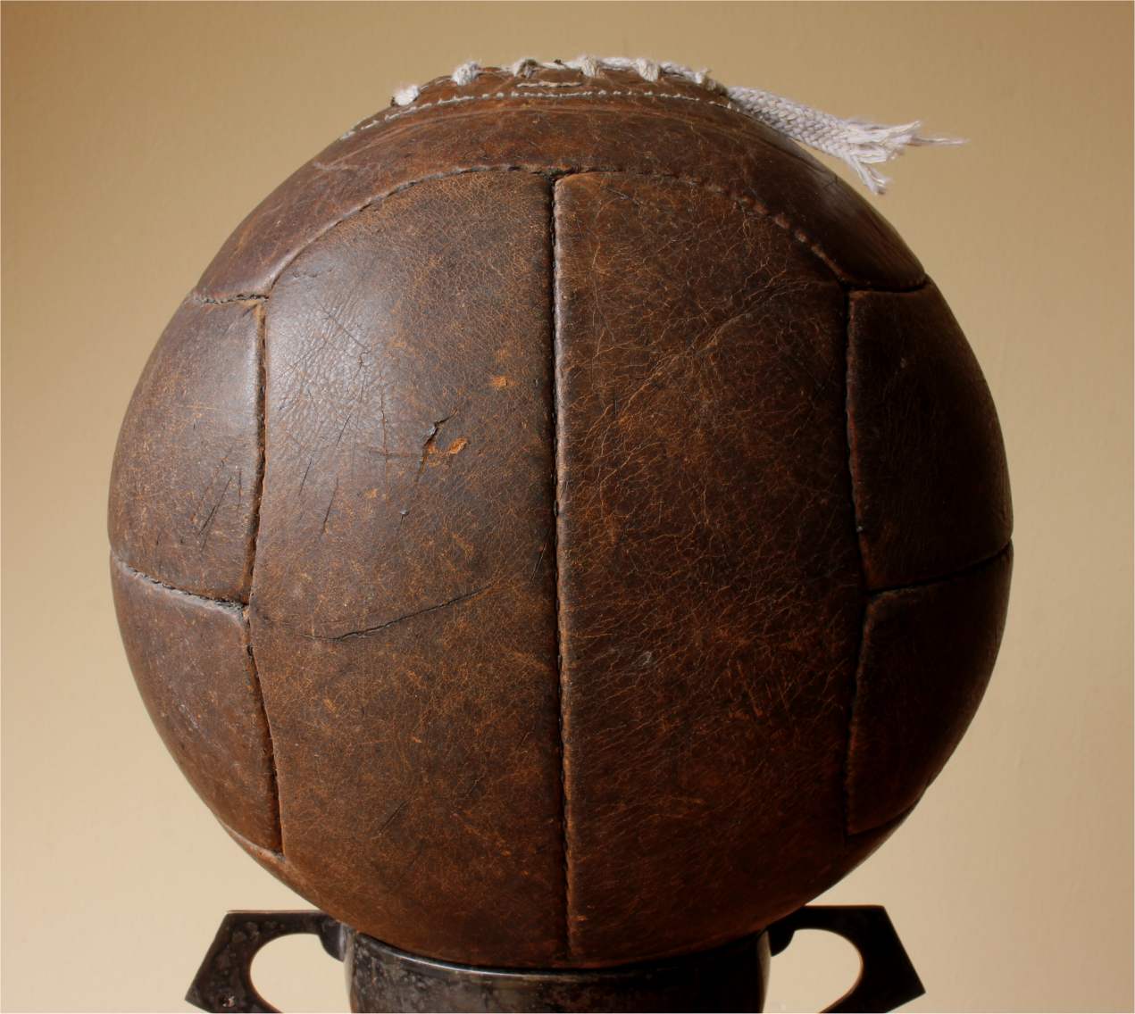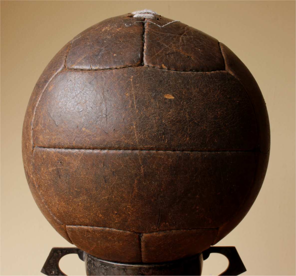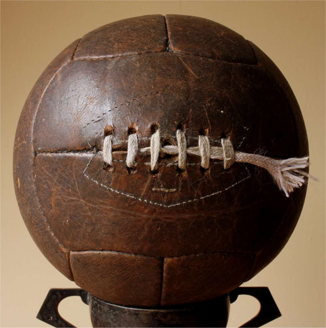 This true vintage ball has had a new valve type bladder fitted so it holds air and displays well. Would make a great addition to a football collection.