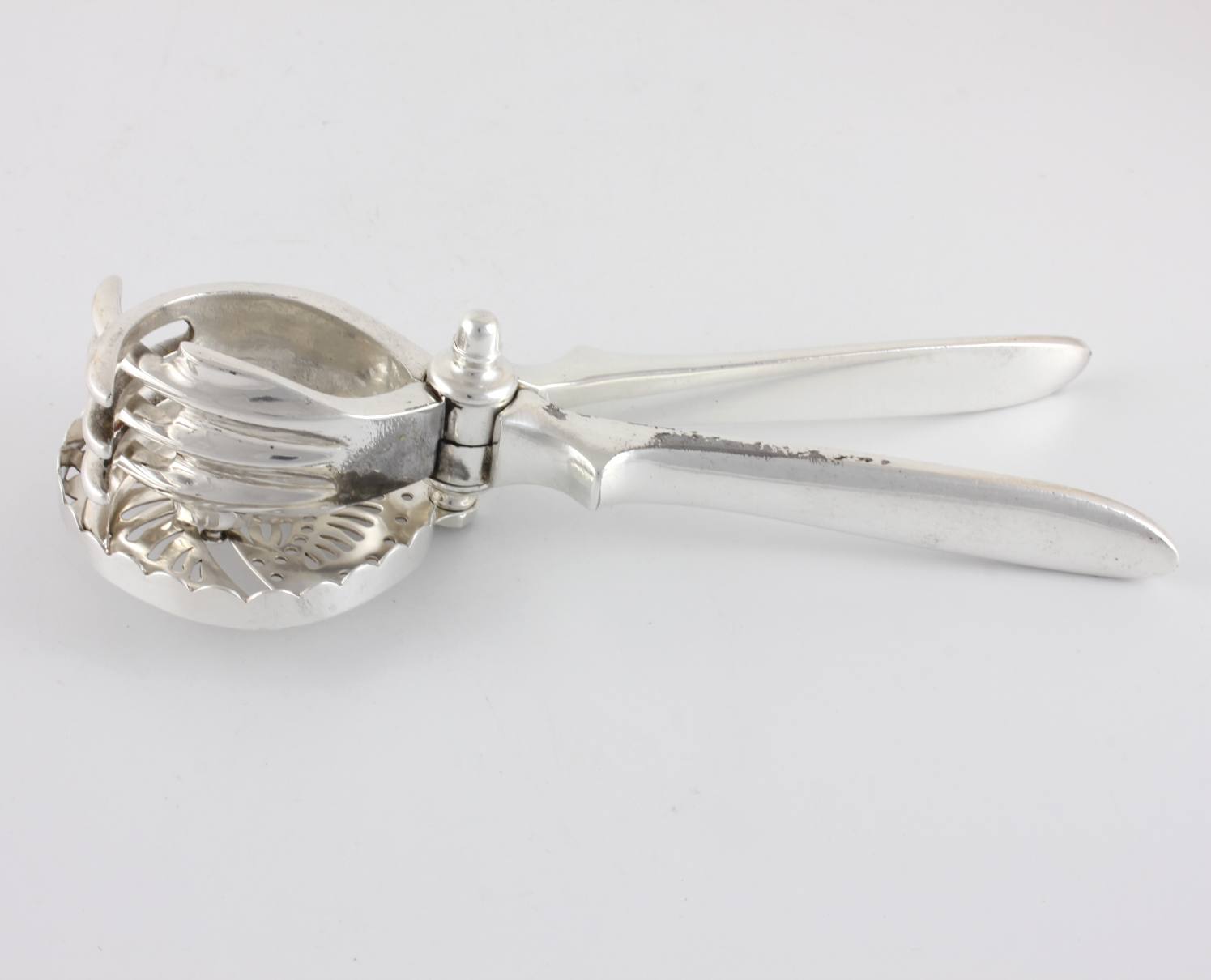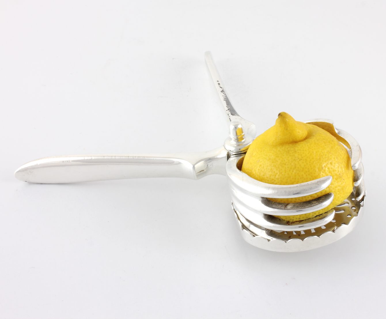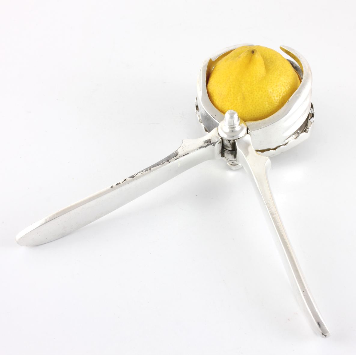 This stylish antique citrus press is made of silver plate and dates from c1930.