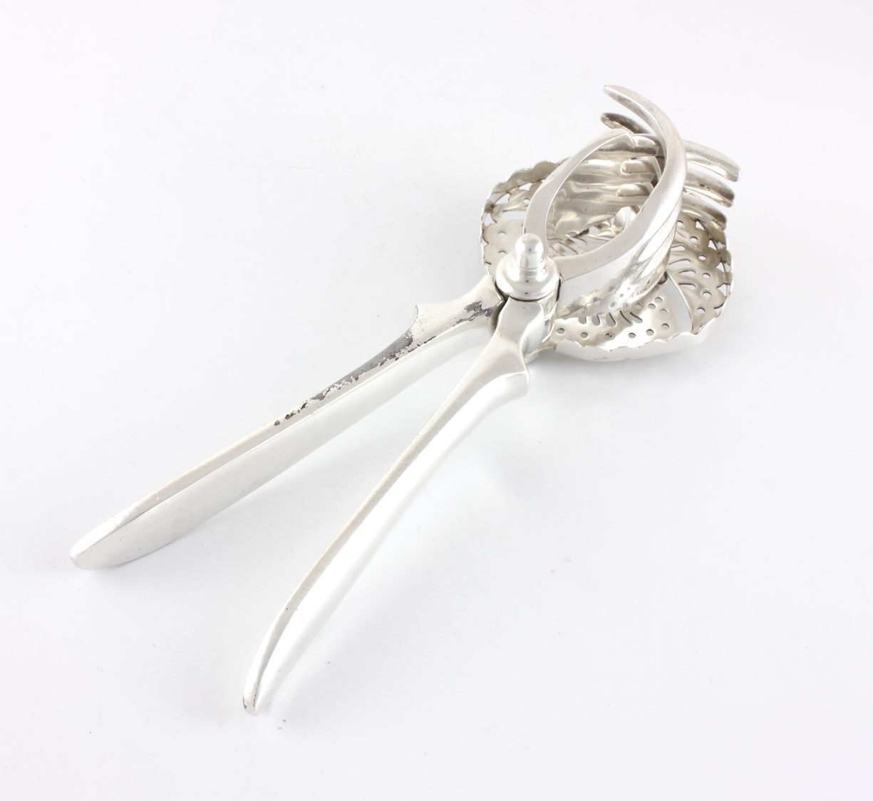 This unusual lemon / lime squeezer works by placing your fruit half within the claws and then closing the two handles to squeeze. The pips are retained by the pierced strainer.