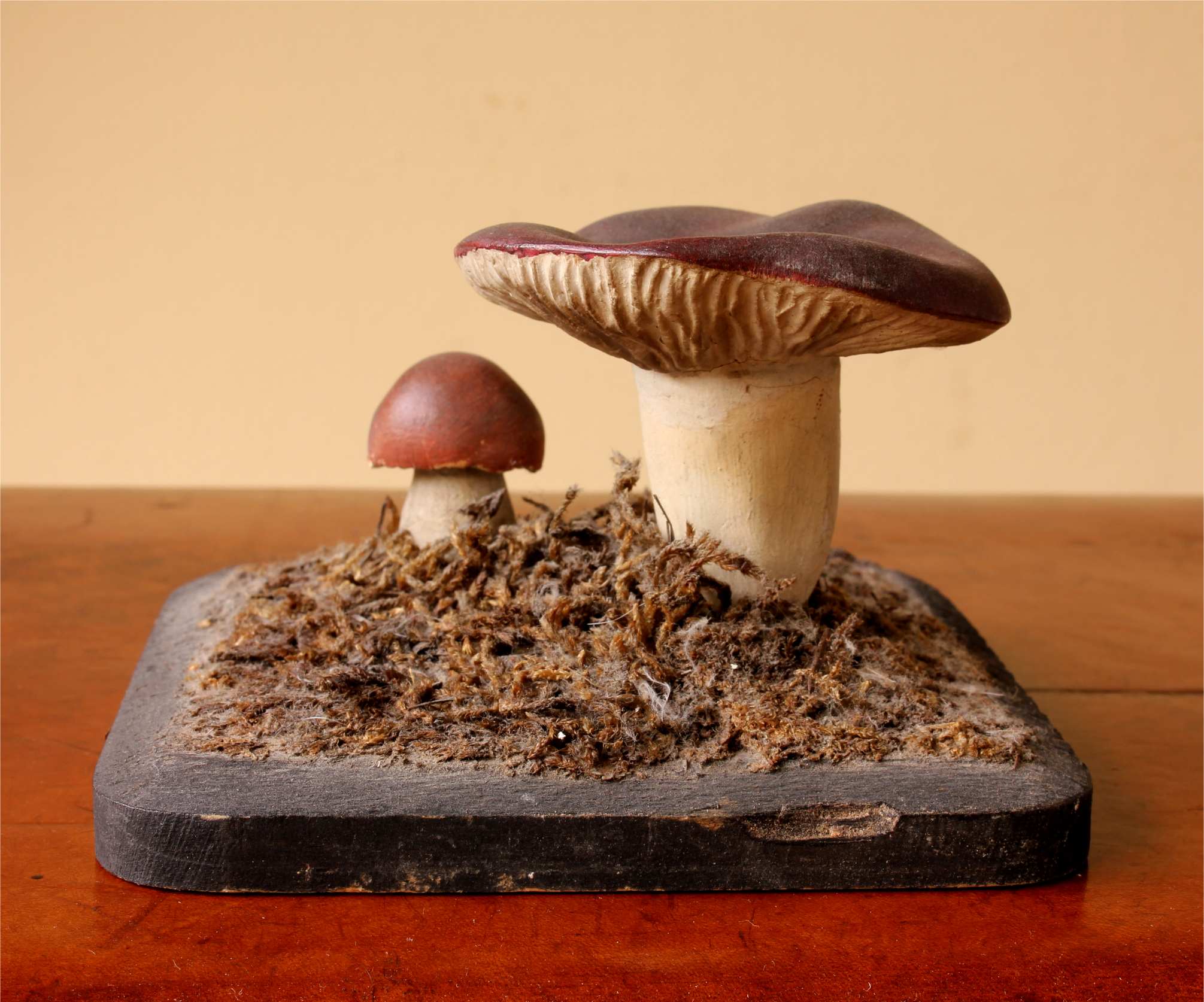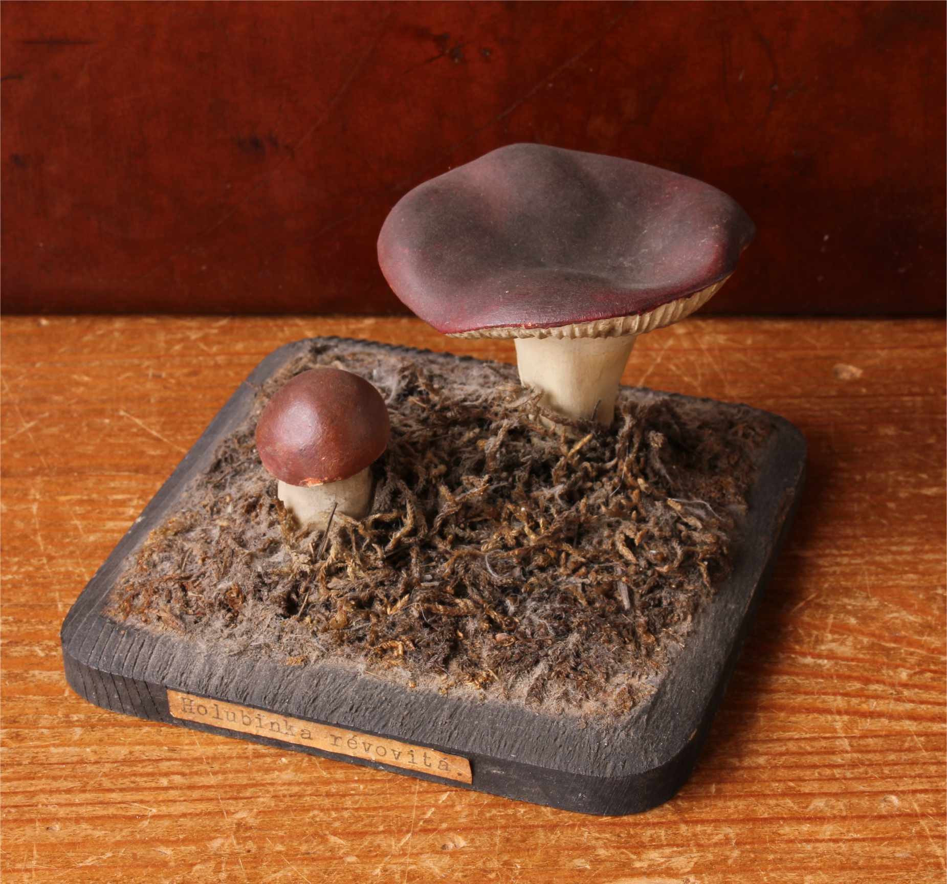 This handsome teaching aid which dates from the early 20th century is of a group of two Holubinka revovita mushrooms and would have been used in a school or university.