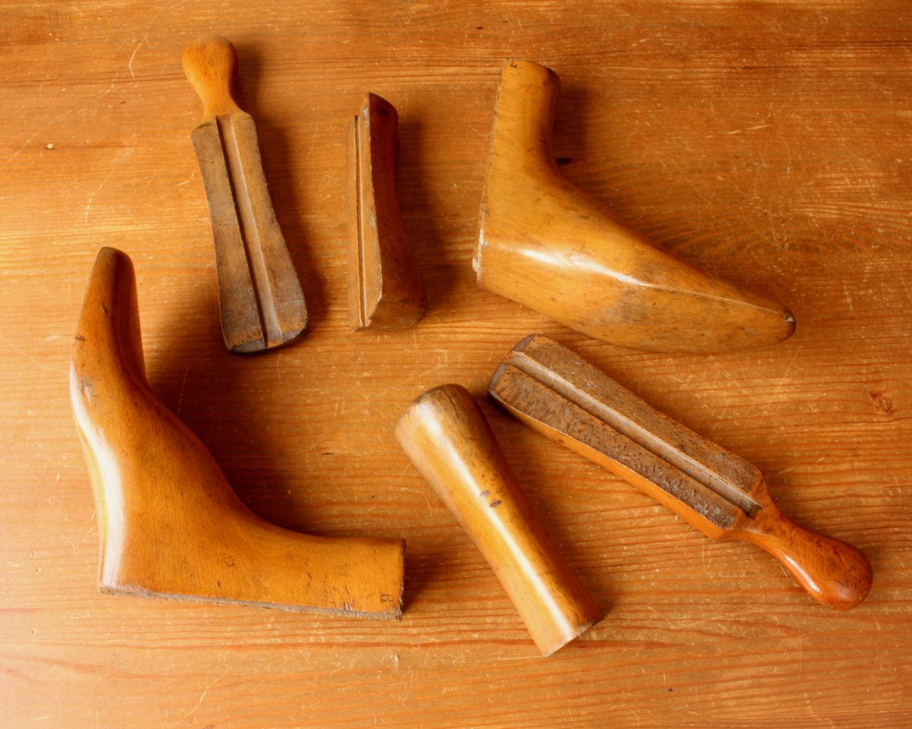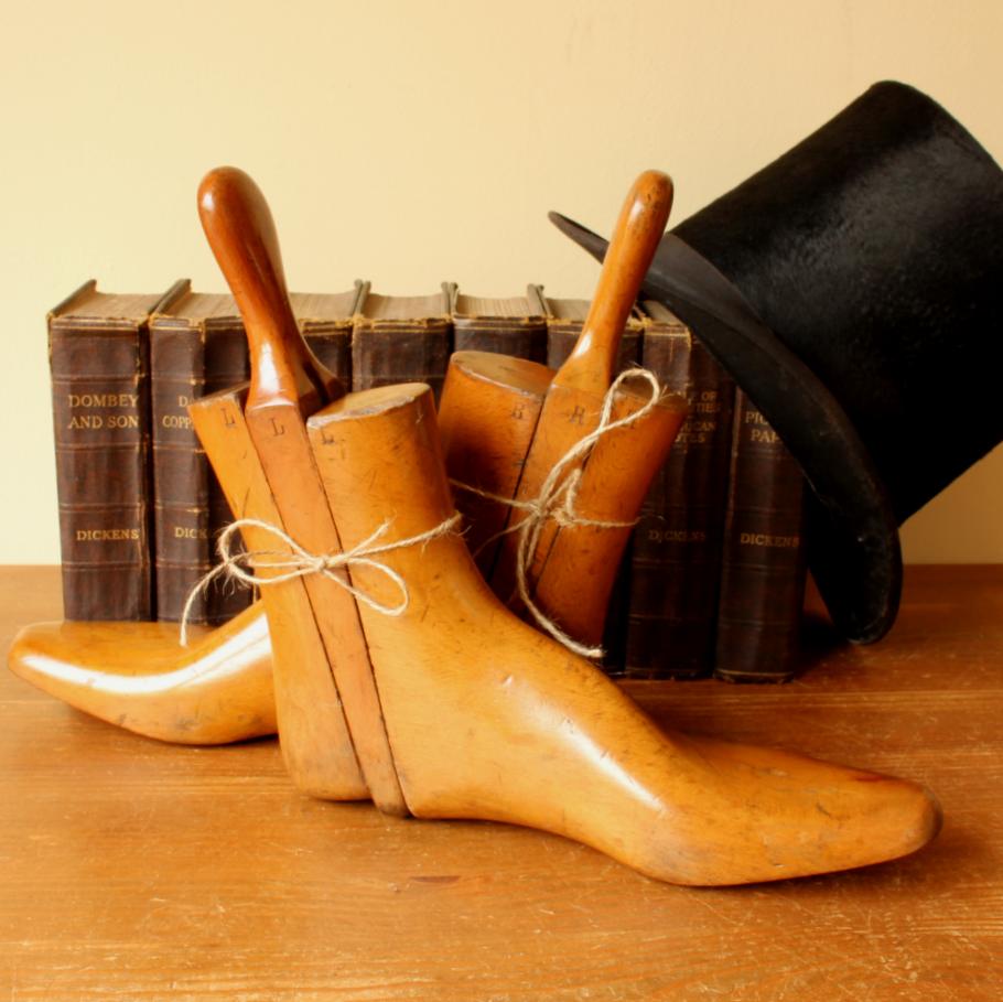 This nice and decorative pair of antique wooden boot lasts which come in 3 parts to each foot - the heel, front and middle are stamped with an L or R for the left and right foot. They are also stamped with the number 9 so are made for a size 9 boot.