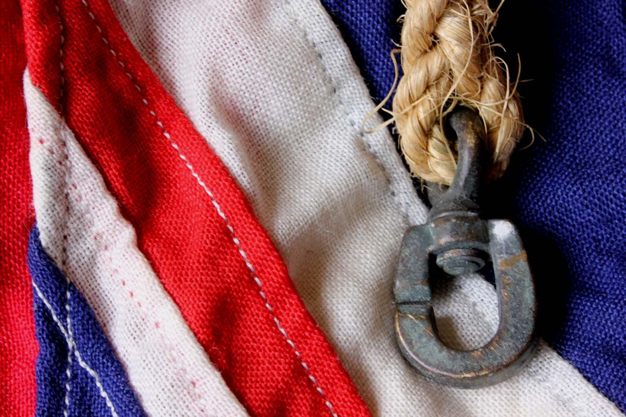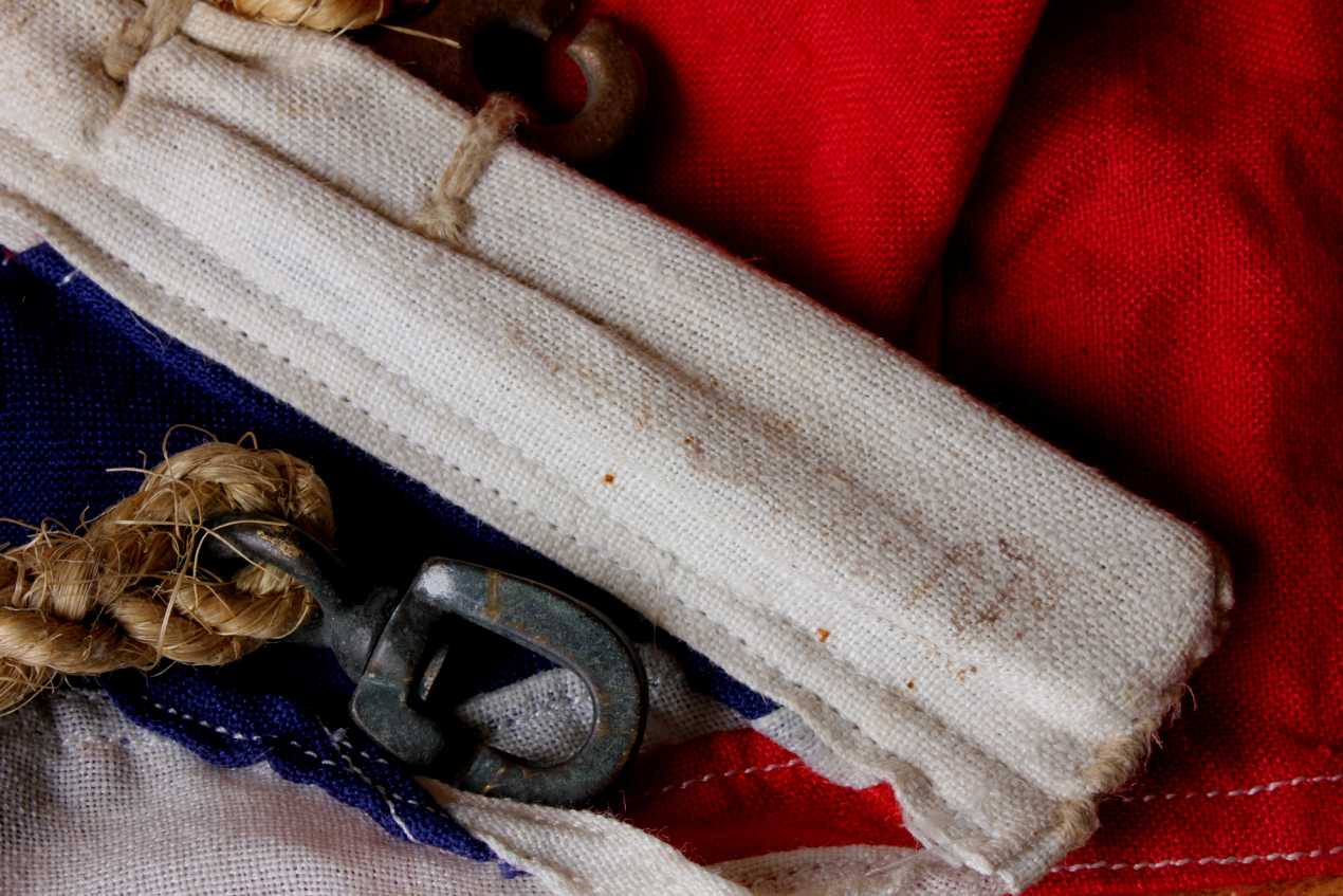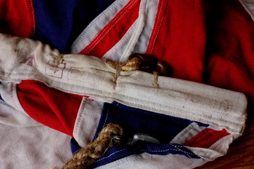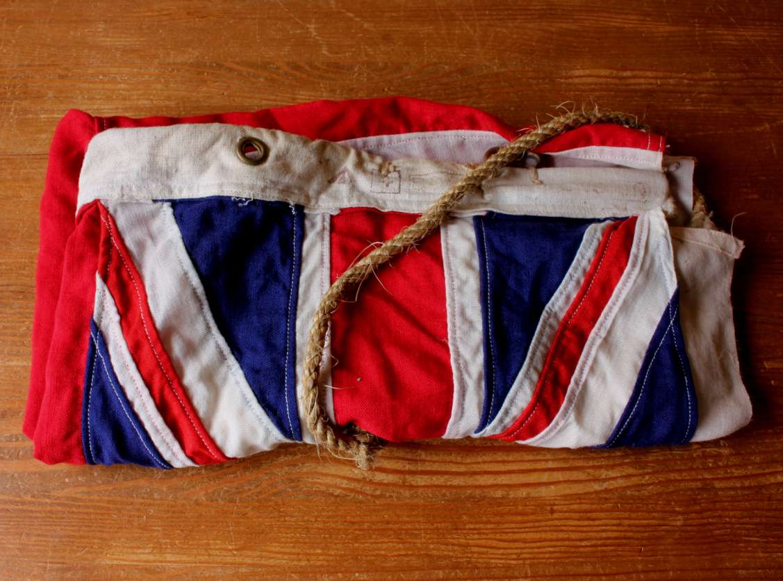 This British White Ensign Flag which dates from the WW2 era is well made from a quality linen material, has individually sewn segments, halyard rope with brass fittings and is marked with a broad arrow.