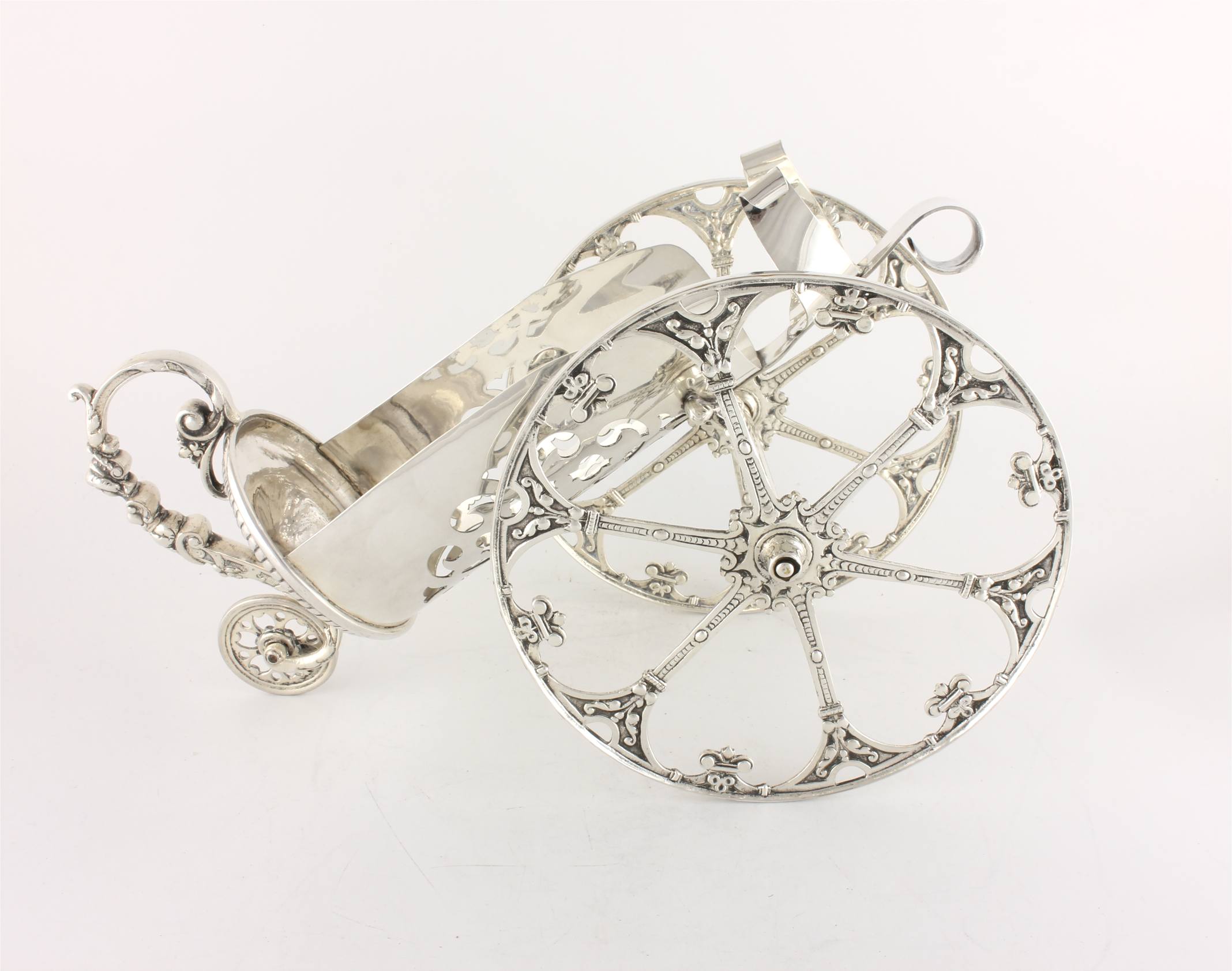 This stylish wine bottle holder which is made of silver plate dates from c1900 and is in the form of a cannon.