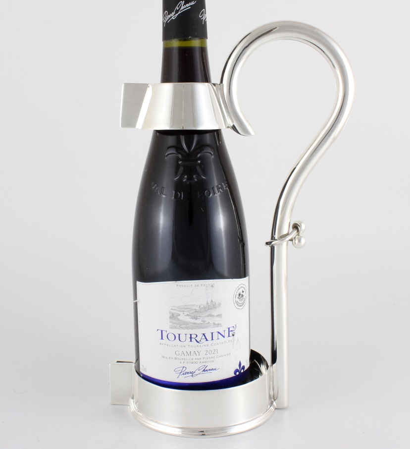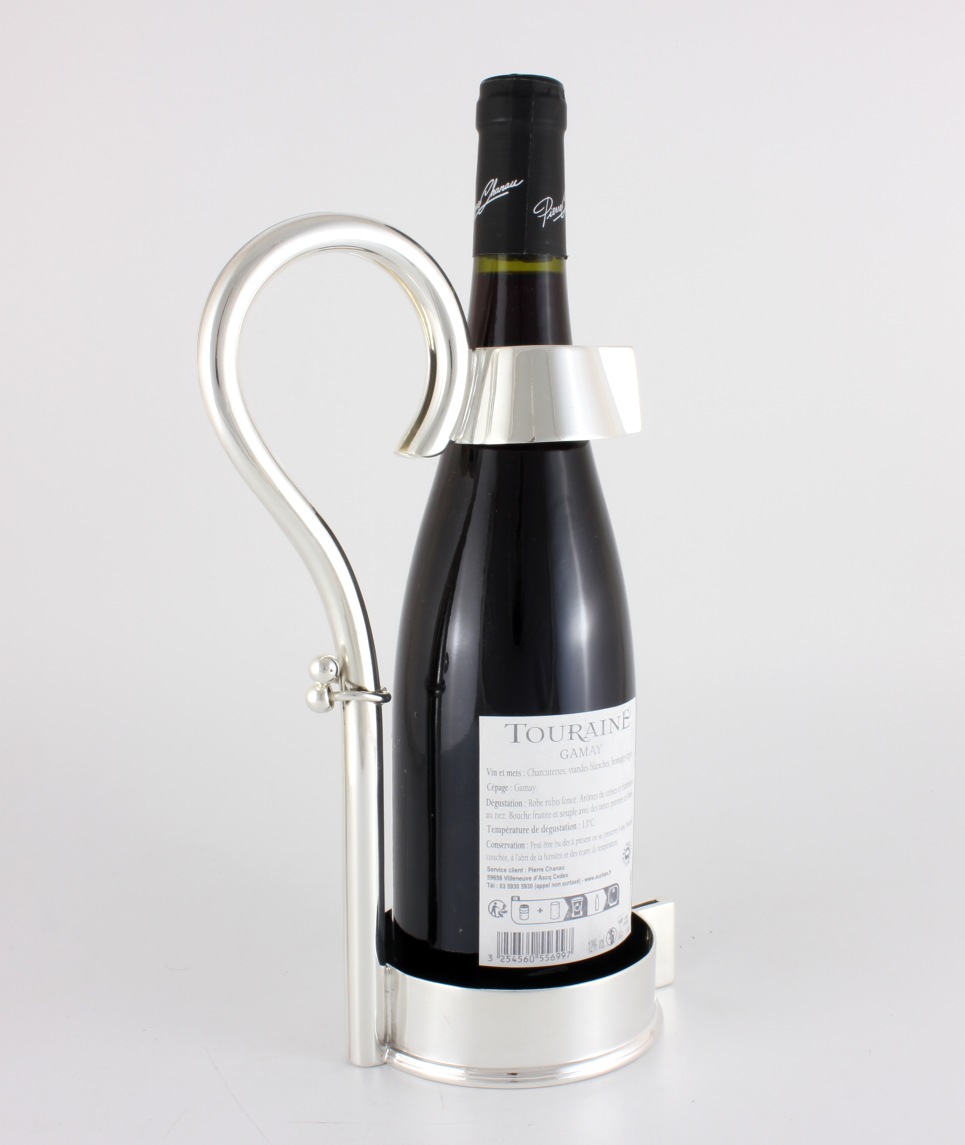 This bottle pourer holds a standard bottle of wine (holds a bottle with a bottom diameter of 9 cm max) and is a stylish way to serve wine from the bottle.