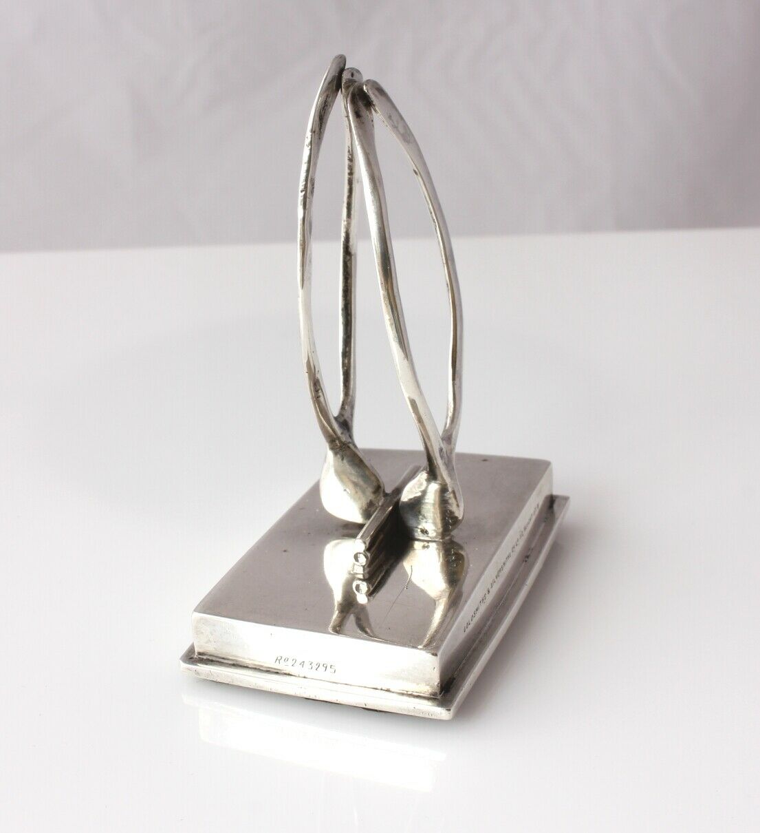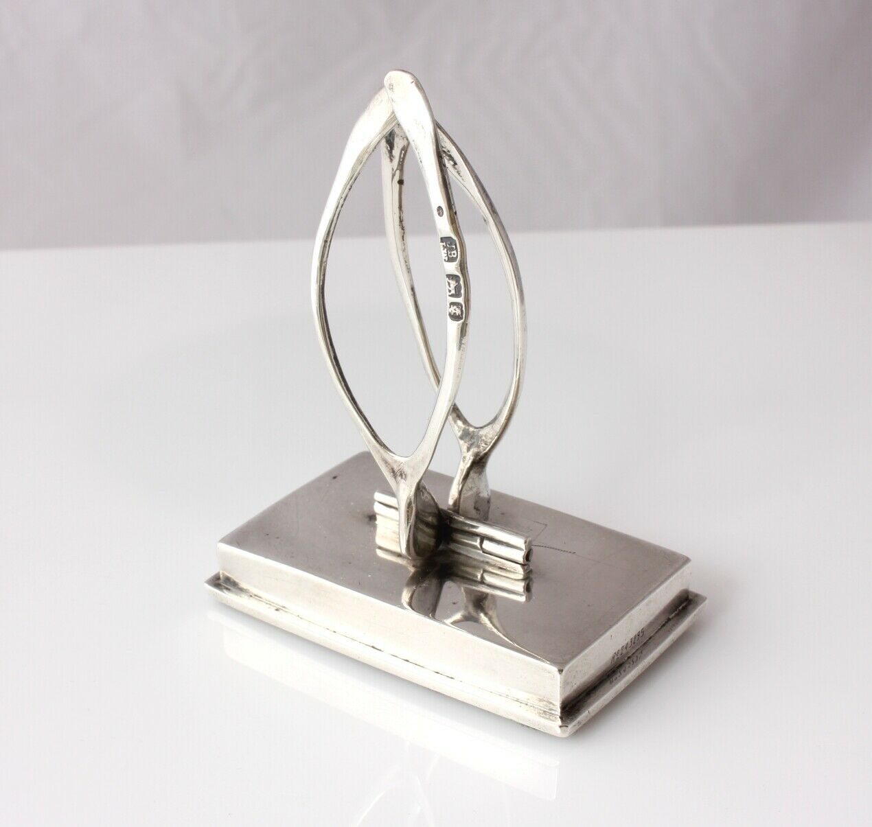 The handsome desk clip which is designed with a pair of lucky wishbones is spring loaded so could also be used as a menu holder or to display a photograph, business card or party invitation. Looks very nice on display just on it's own.
