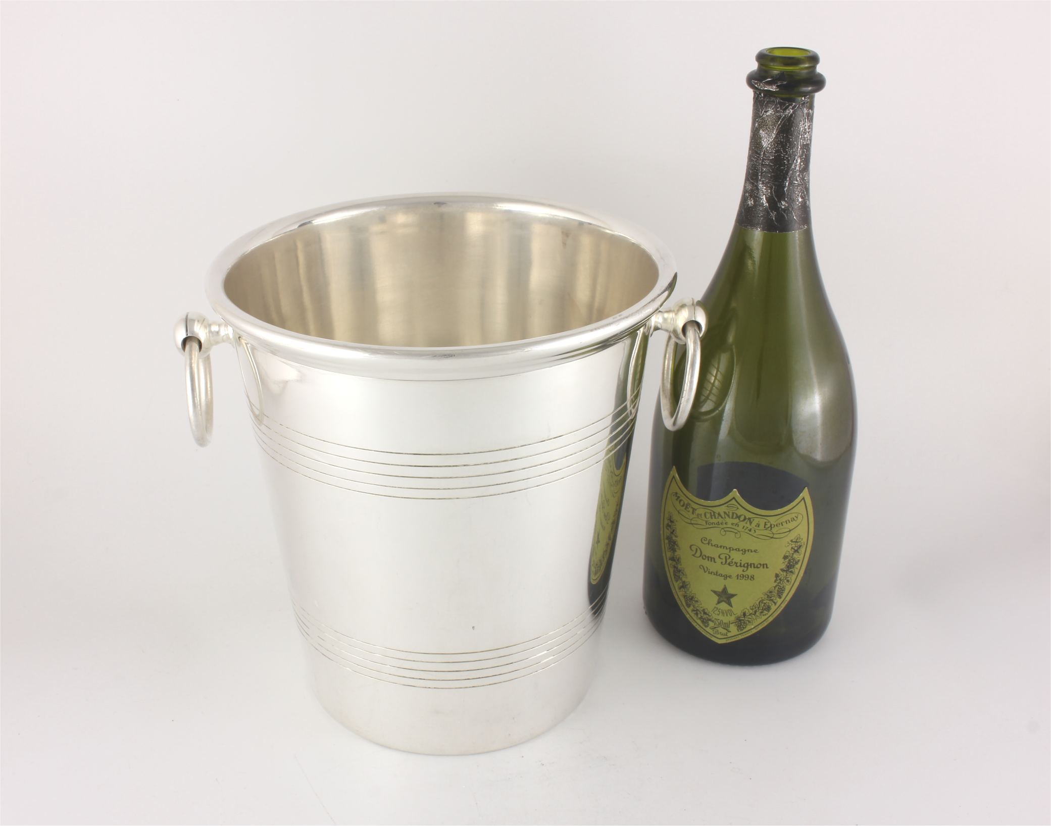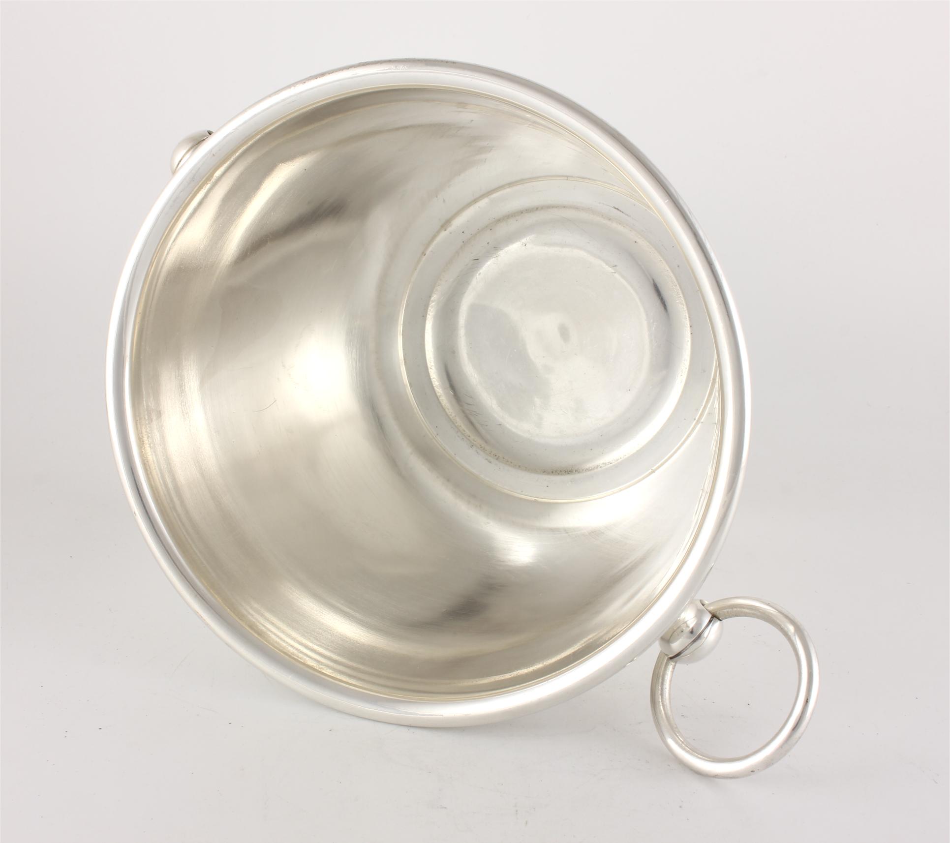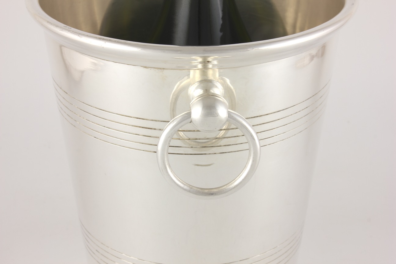 This vintage wine bucket has a decorative ring design to the body, two ring handles to the sides and the underside is marked with the maker's marks.
