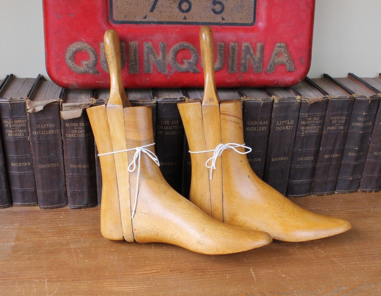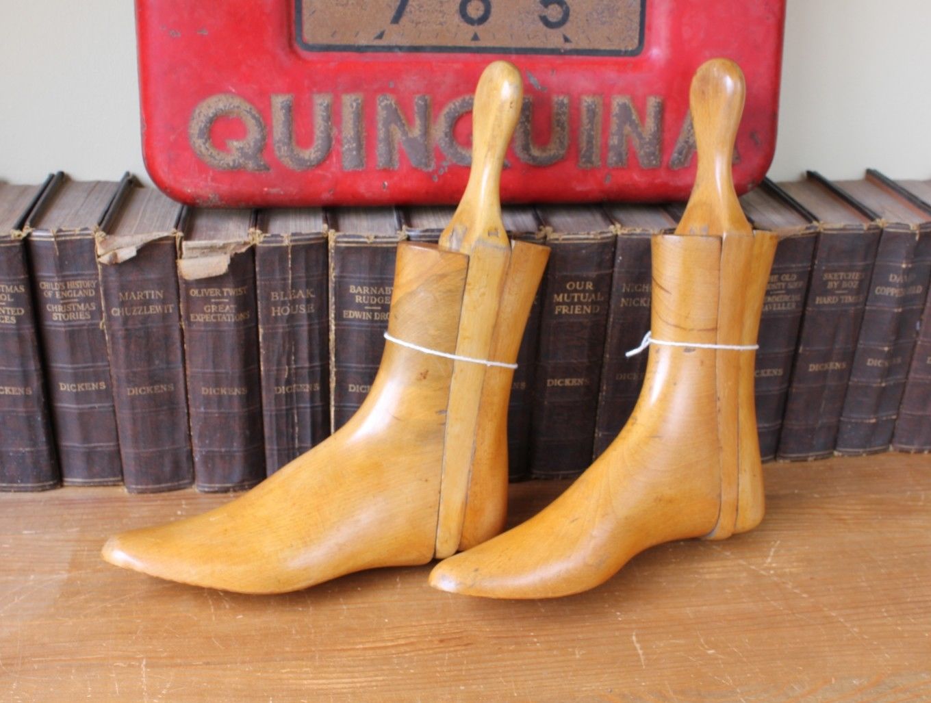 This wonderful pair of vintage wooden boot lasts come in 3 parts to each foot - the heel, front and middle.