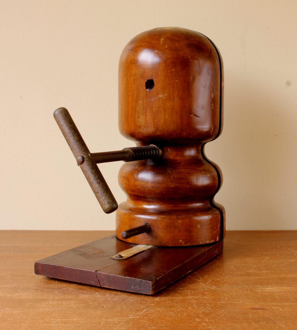 This large antique wooden hat block stretcher which dates from c1900 was originally used to manufacture hats and has a wonderful rich colour.
