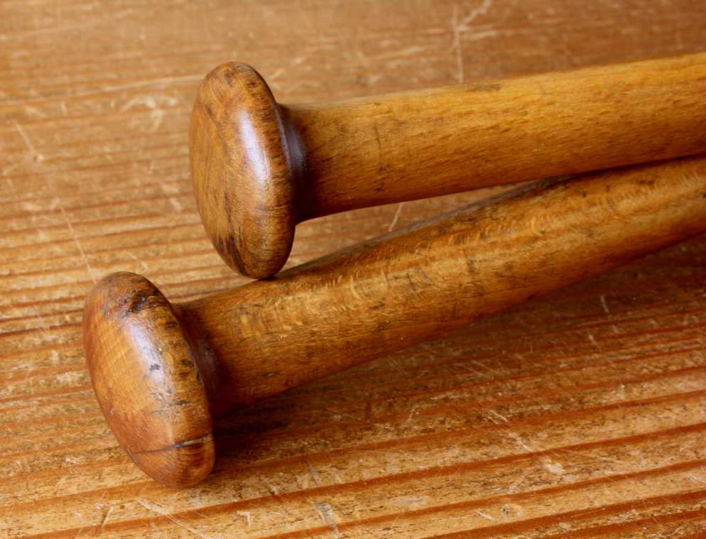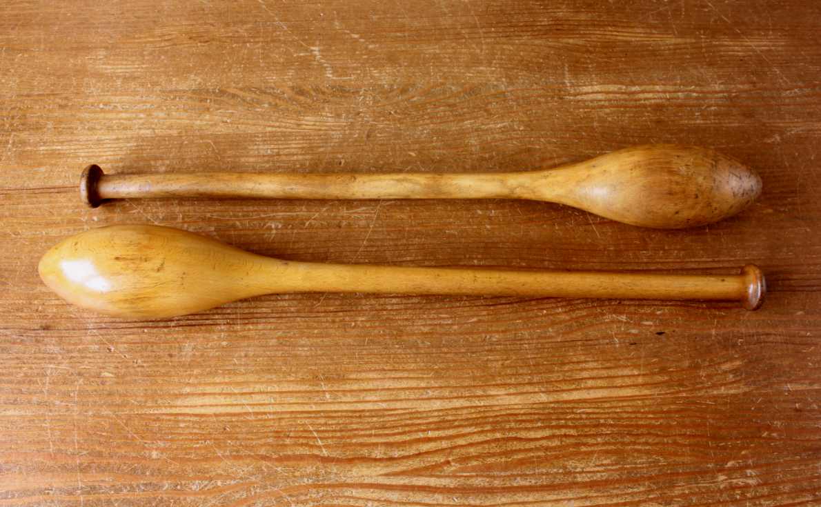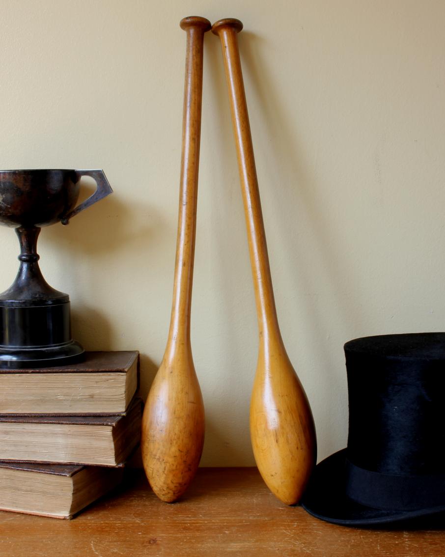 This pair of wooden Indian clubs or meels which are approx 49.5 cm (19 1/2") in length date from the early 20th century and make unusual decorative pieces.