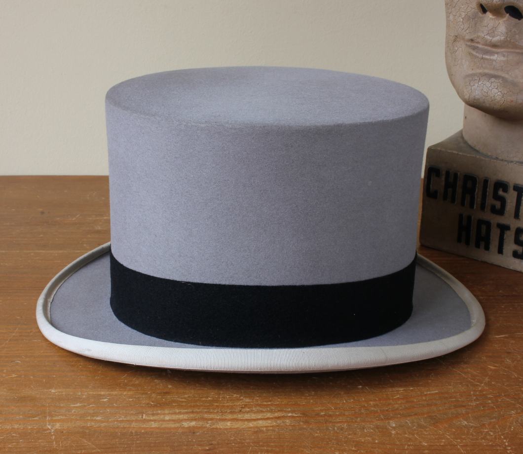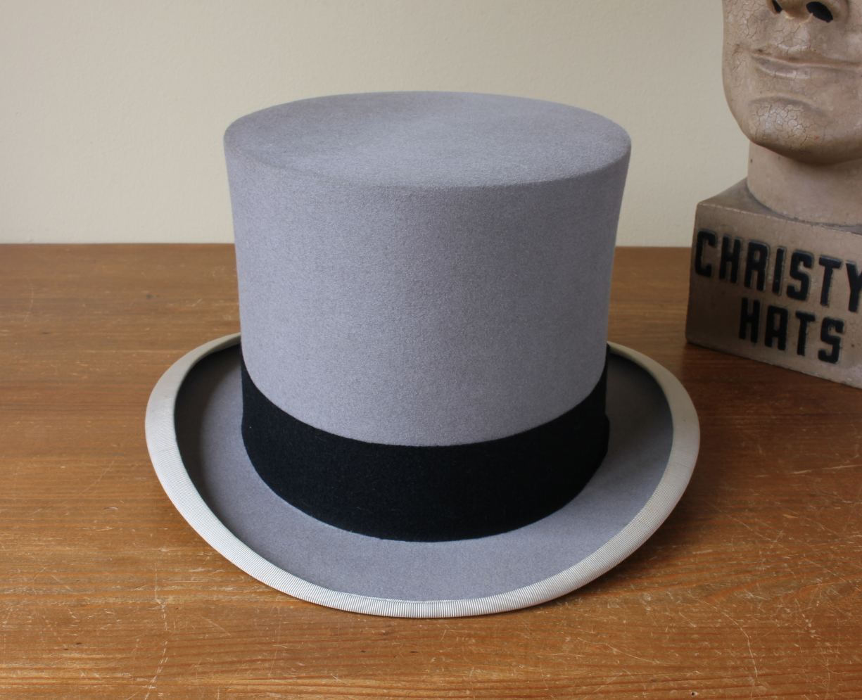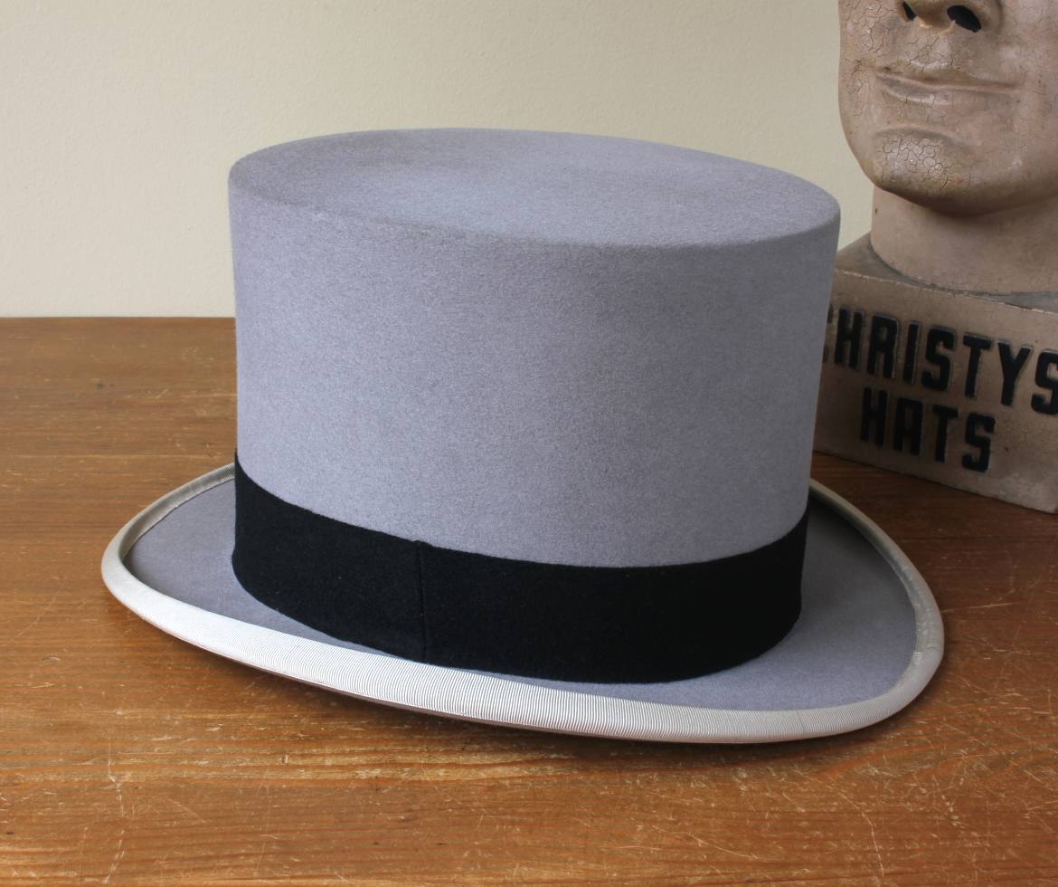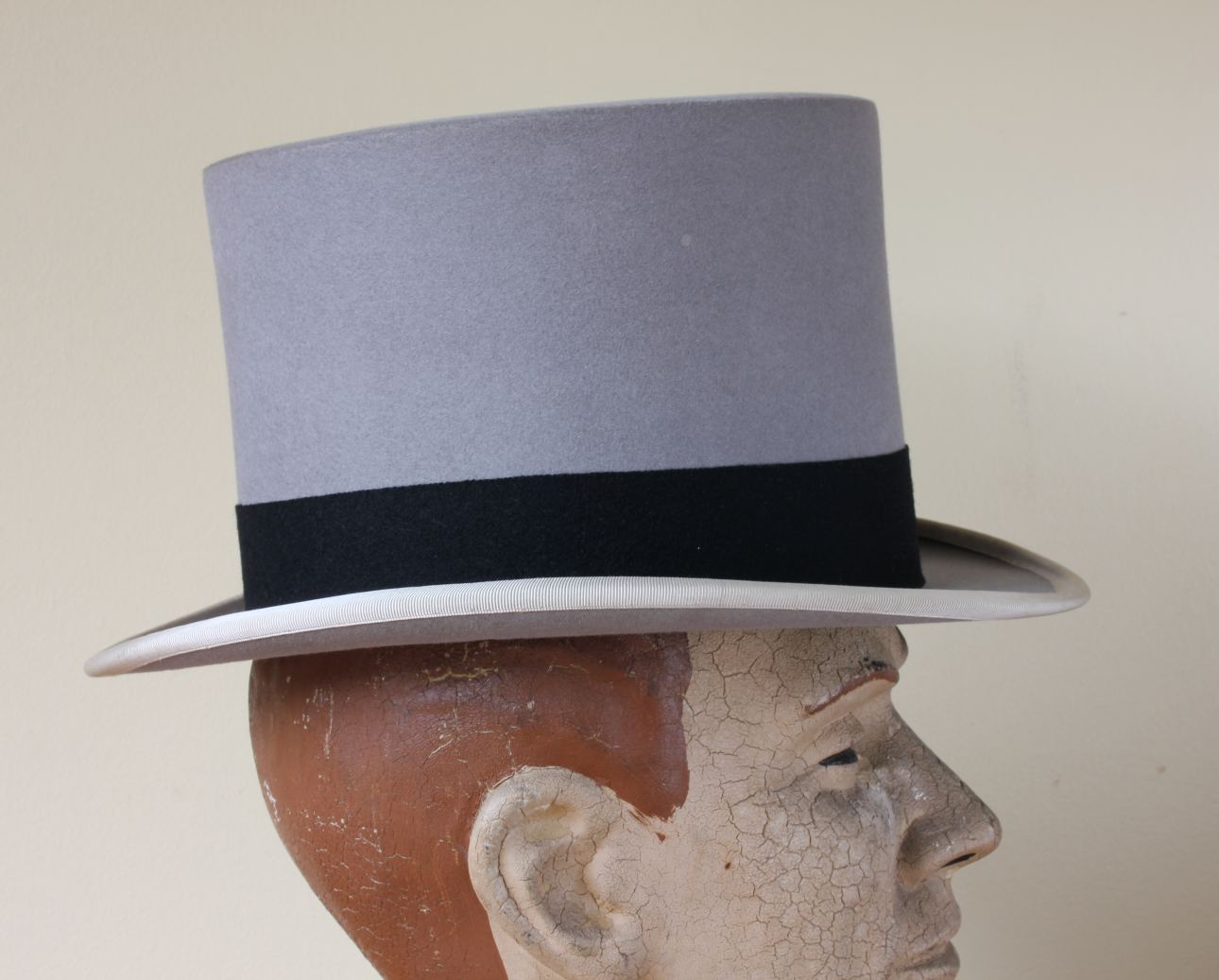 This handsome vintage grey top hat which dates from the first half of the 20th century is made by top quality hat maker Woodrow and is marked to the inside with the Woodrow Piccadilly London logo.