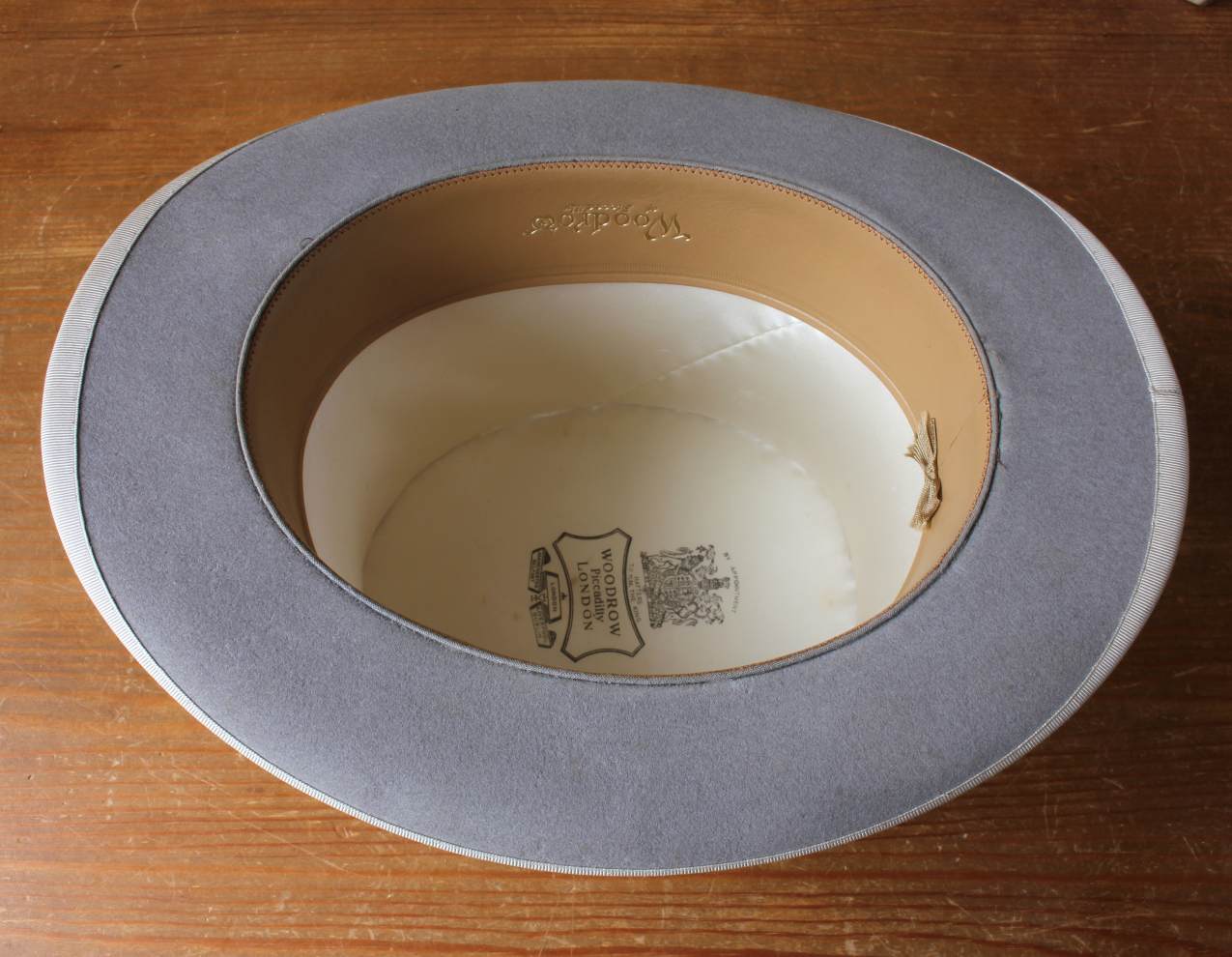 Makers details as shown inside hat: Woodrow Piccadilly London. By Appointment. Hatters to HM The King.